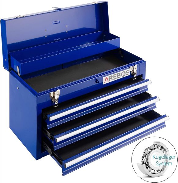 Descrizione prodotto Cassetta con 3 cassetti e 2 vani portaoggetti Volete ordine nel vostro laboratorio? Allora le valigette portautensili sono esattamente la cosa giusta per voi! Sono l’aggiunta perfetta per ogni attività artigianale, per ogni officina automobilistica e anche per la vostra officina per hobby.Potete ordinare i vostri utensili in modo ottimale nei cassetti estraibili. Hanno una funzione di bloccaggio in modo che non si aprano da soli. I tappetini antiscivolo assicurano che gli strumenti rimangano al loro posto. Con due serrature a scatto integrate e lucchetti supplementari, la valigetta degli attrezzi può essere bloccata in modo sicuro.I vantaggi a colpo d’occhio: Valigetta portautensili con 3 cassetti con cuscinetti a sfera e scomparti ripiegabili.Cassetti con tappetini antiscivoloLa funzione di blocco impedisce l’apertura involontaria dei cassettiChiudibile con 2 chiusure a scatto e lucchetti supplementari Cassetti con cuscinetti a sferaI cassetti con cuscinetti a sfera garantiscono un’apertura dei vani senza problemi.Funzione di bloccaggio per un trasporto sicuroLa funzione di bloccaggio impedisce l’apertura involontaria dei cassettiSchizzo dimensionato 3x Cassettiera a cassetti: 45 x 19 x 4 cm1x scomparto incernierato: 50 x 20,5 x 6 cmTotale cassetta degli attrezzi: 52 x 22 x 30,5 cm Dati tecnici:3 cassetti Cassetta45 x 19 x 4 cm1x vano a cerniera50 x 20,5 x 6 cmCassetta degli attrezzi totale52 x 22 x 30,5 cmSuperficieResistente ai graffi, verniciata a polvereScomparticon tappetini antiscivoloColoreBlu o rosso Peso8,2 kg Volume di consegna1x cassetta degli attrezzi, 1x manuale