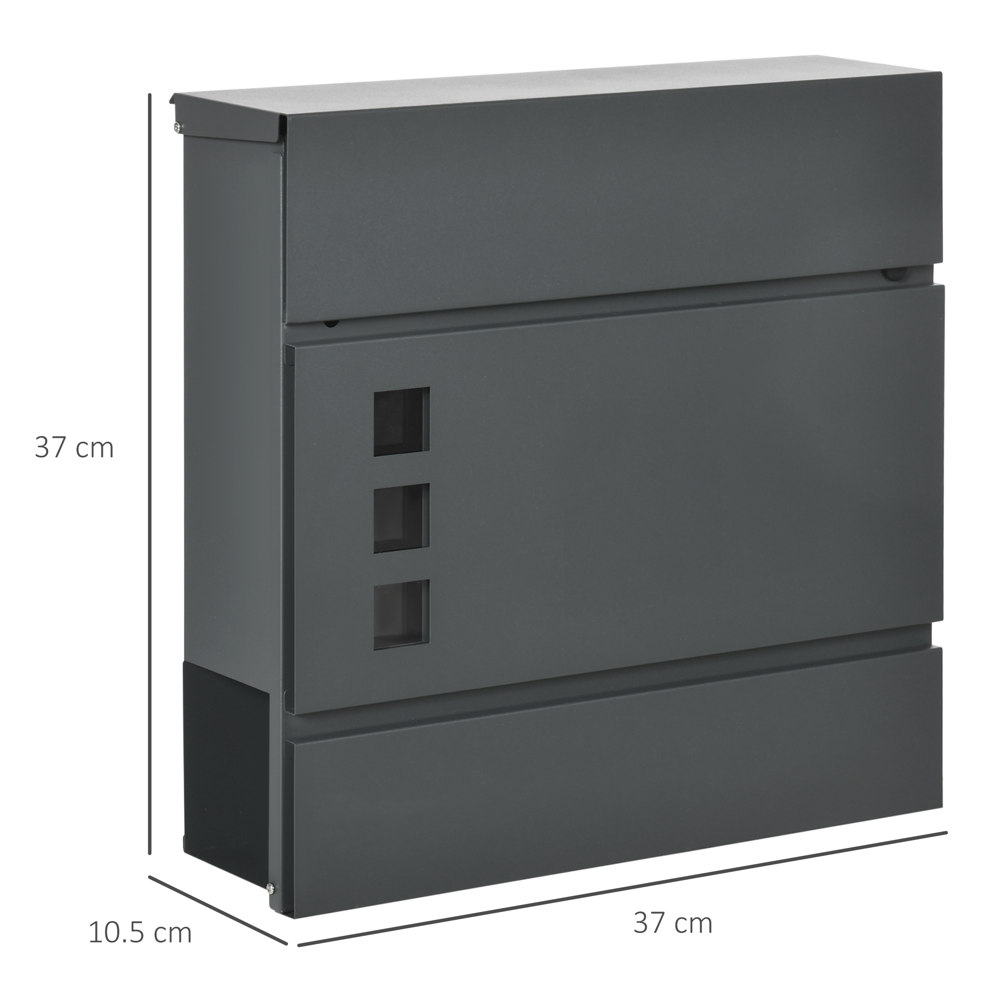 Cassetta Postale in Acciaio Zincato con 3 Fessure e 2 Chiavi di Sicurezza, 37×10,5×37 cm, Grigio