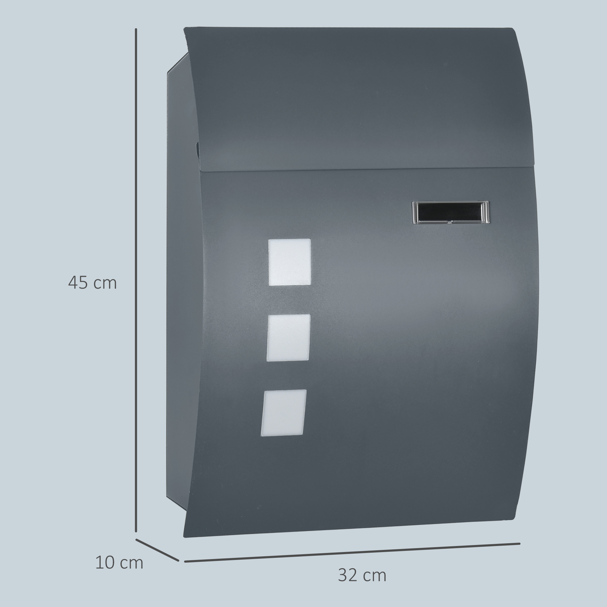 Cassetta Postale Ricurva in Acciaio con 3 Fessure e 2 Chiavi di Sicurezza 45x10x32 cm, Grigio
