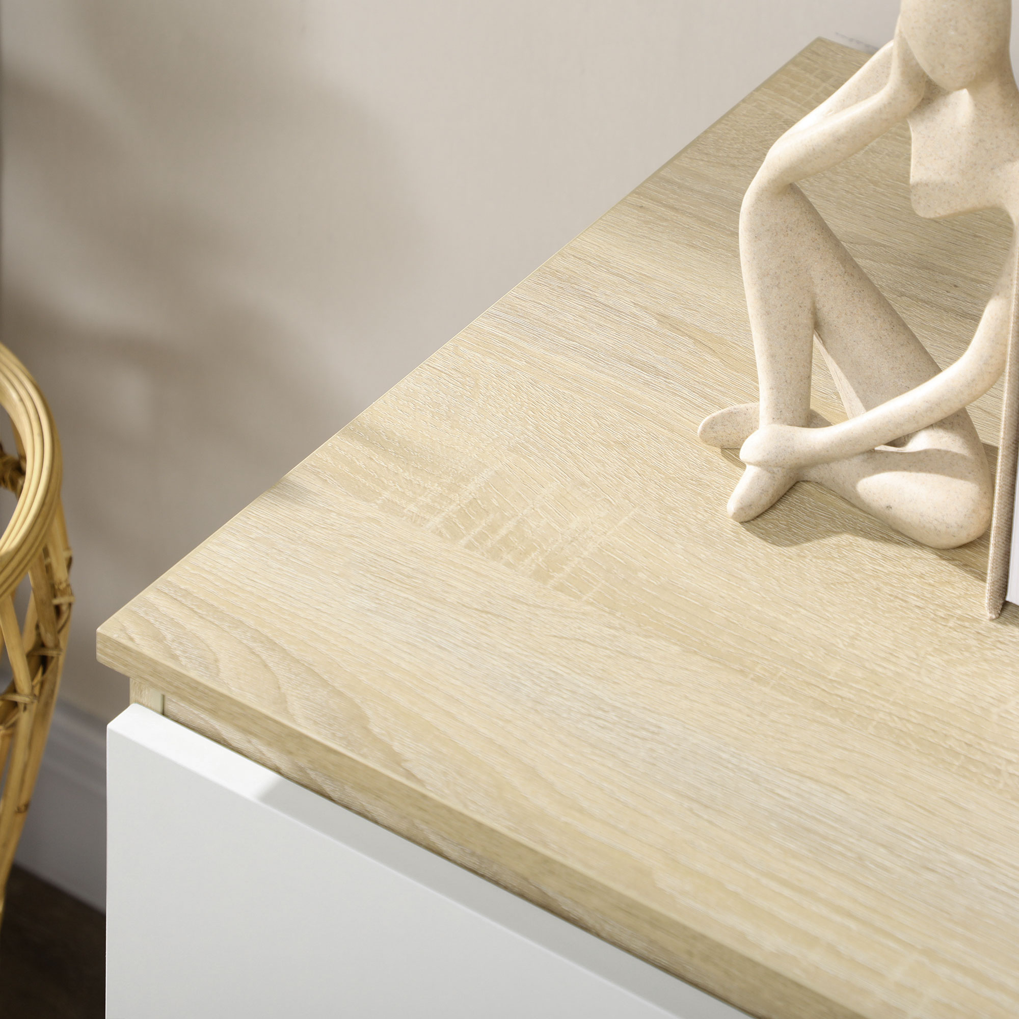 Cassettiera 6 Cassetti Moderna in Legno, 135x48x77cm, Bianco e Colore Legno
