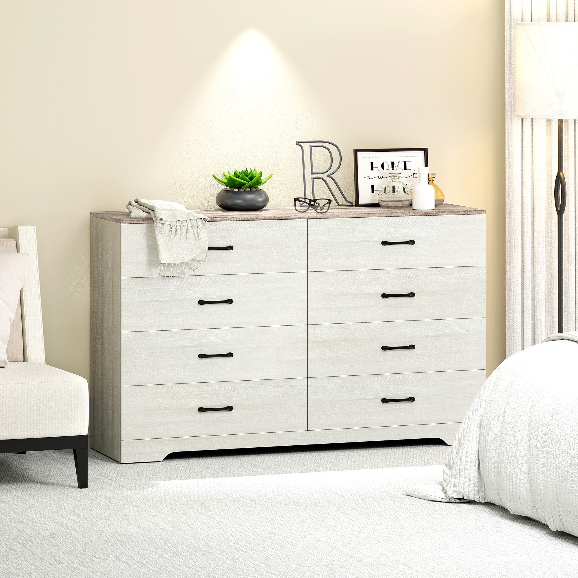 Cassettiera 8 Cassetti Moderna in Legno, 140x40x86 cm, Noce e Grigio Chiaro
