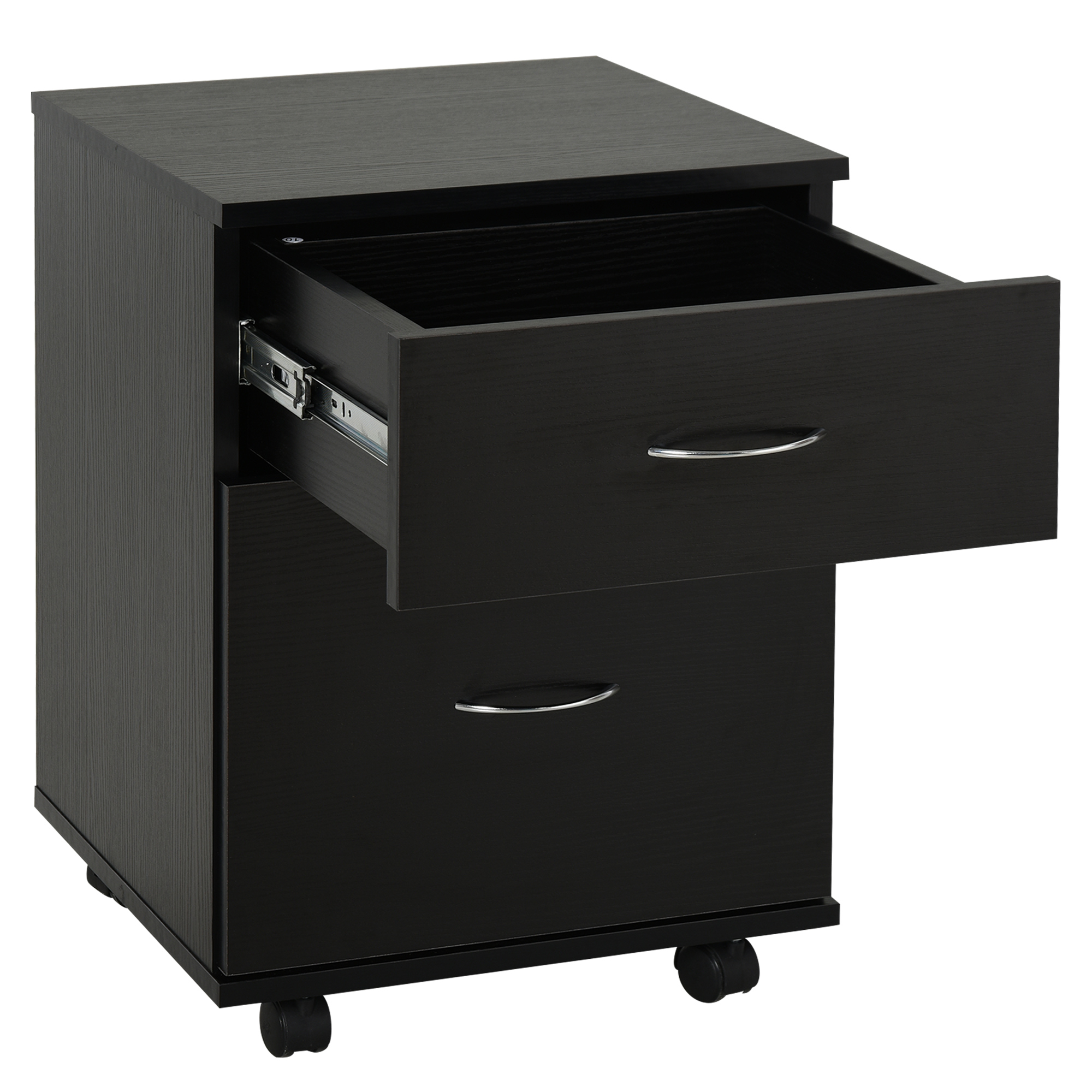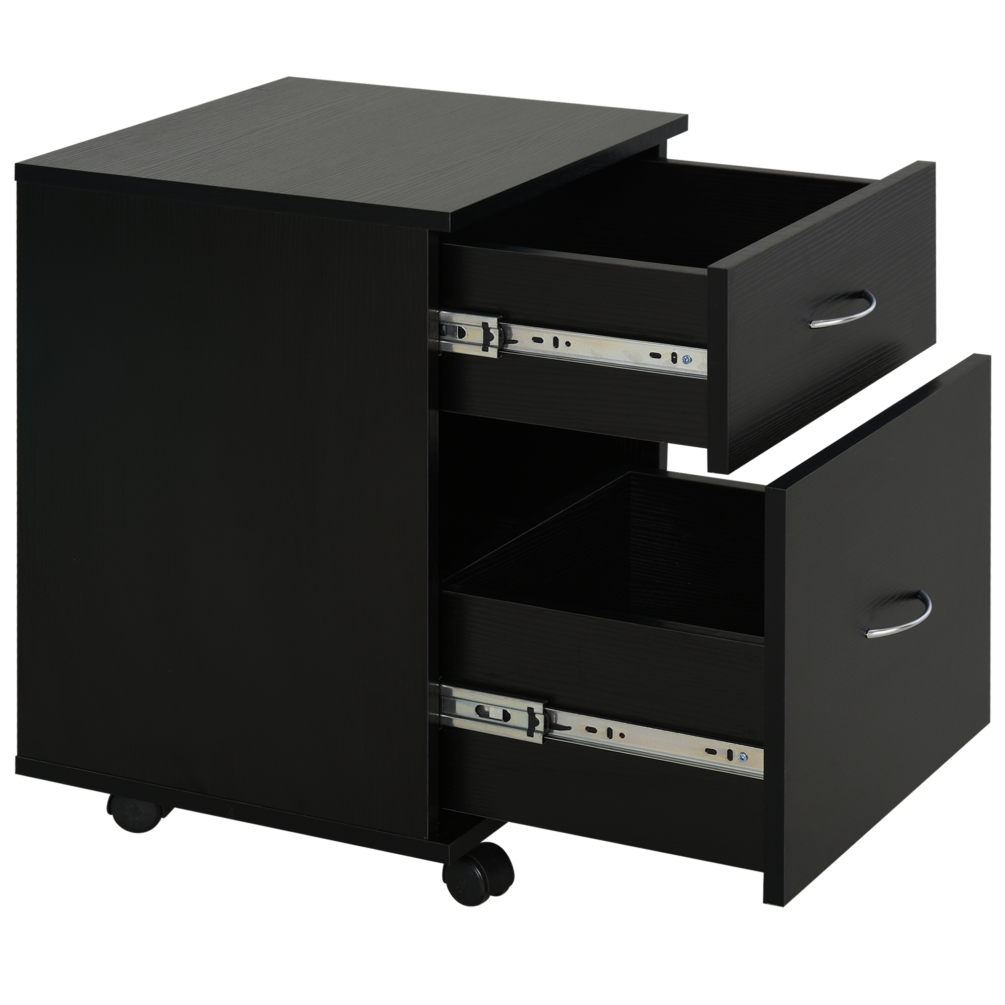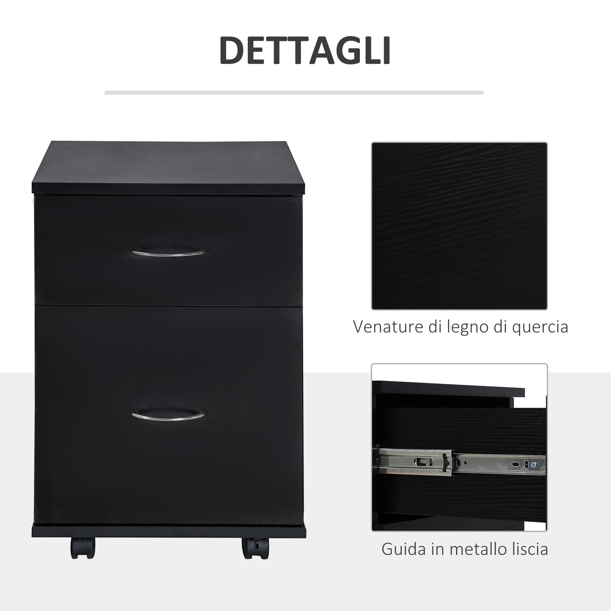Cassettiera Ufficio e Casa 2 Cassetti e Ruote con Freno in Legno Nero