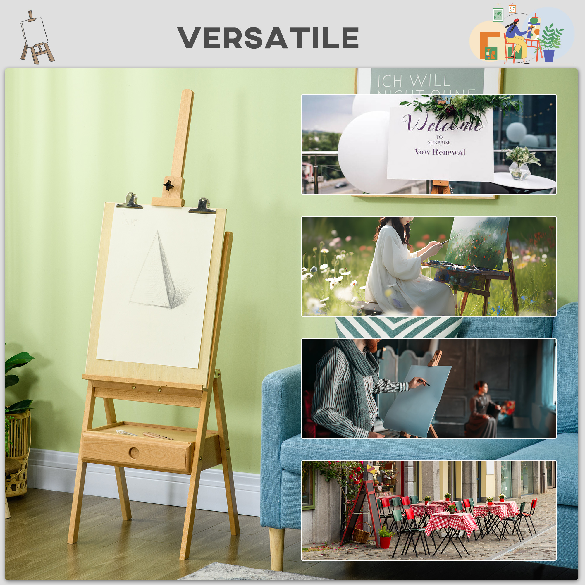 Cavalletto da Pittore ad Altezza Regolabile con Cassetto, in Legno di Faggio, 43,5x43x150-190 cm
