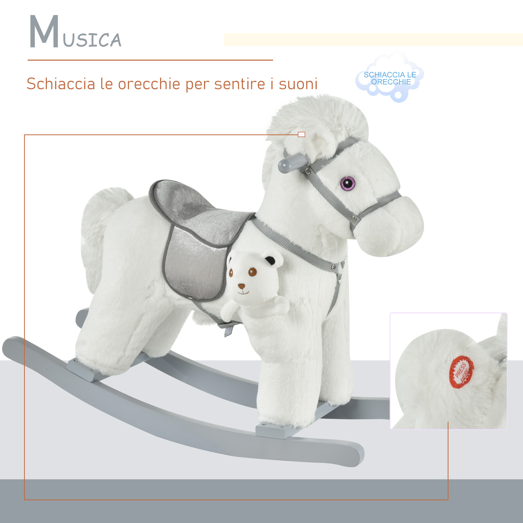 Cavallo a Dondolo con Suoni e Orsetto Incluso per Bimbi da 18-36 Mesi