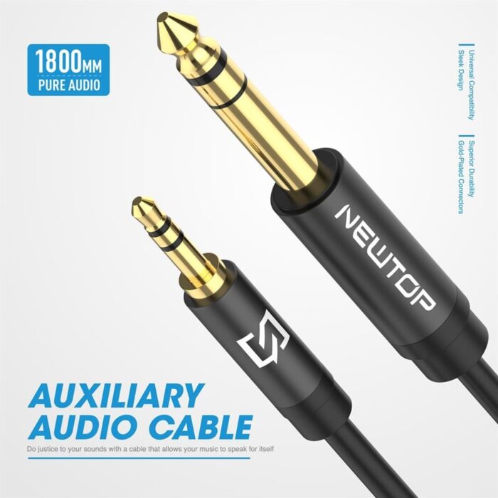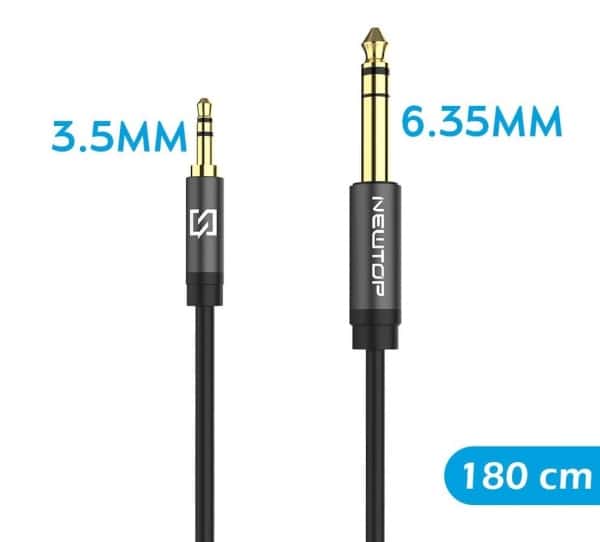 Newtop AUX08 Cavo AUX Jack 6.35mm a 3.5mmNewtop AUX08 Cavo AUX Jack 6.35mm a 3.5mmIl cavo Newtop AUX08 è la scelta perfetta per una connessione audio di alta qualità. Con una lunghezza di 1.8 metri e connettori placcati in oro, offre una trasmissione del segnale chiara e priva di interferenze. Ideale per collegare dispositivi audio come smartphone, PC, e console di mixaggio a impianti audio o home theater.Caratteristiche PrincipaliCavo Stereo Bidirezionale: Collegamento tra dispositivi con jack 3.5mm e 6.35mm, permette la trasmissione audio in entrambe le direzioni.Materiali di Alta Qualità: Connettori placcati in oro per una resistenza alla corrosione superiore e una trasmissione del segnale senza perdita.Versatilità: Adatto per smartphone, iPod, iPhone, portatili, PC, casse, console di mixaggio, dispositivi di home theater e amplificatori.Lunghezza: 1.8 metri, per una connessione comoda e flessibile.Ideale per Ogni Esigenza AudioChe tu stia collegando un dispositivo audio al tuo amplificatore o a un sistema di home theater, il cavo Newtop AUX08 garantisce una trasmissione chiara e senza distorsioni, migliorando la tua esperienza audio.Design e DurabilitàIl cavo è progettato con materiali resistenti e connettori placcati in oro, per garantire una lunga durata e una prestazione eccellente nel tempo.Contenuto della ConfezioneNella confezione troverai:1 x Cavo 3.5mm a 6.35mm Stereo bidirezionale