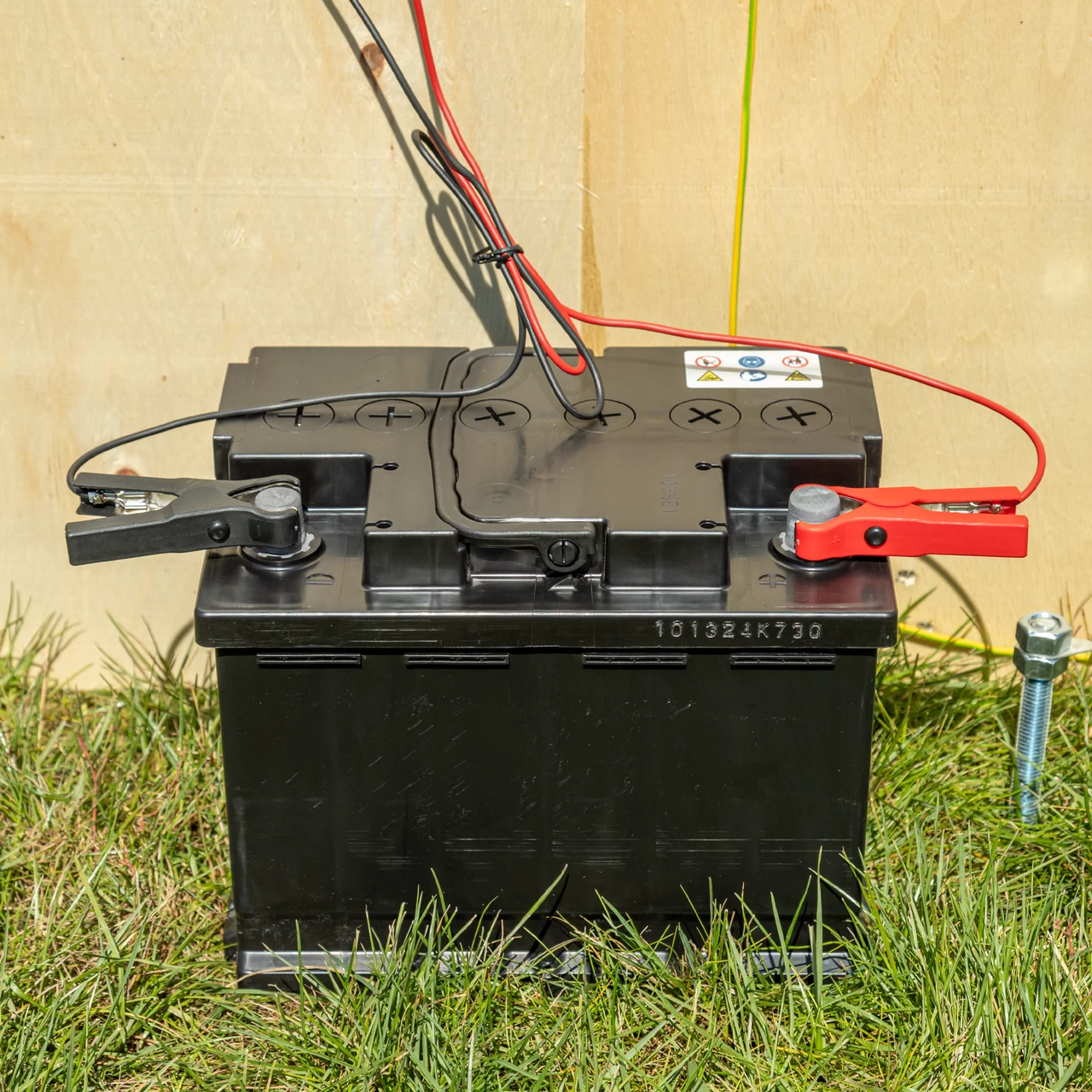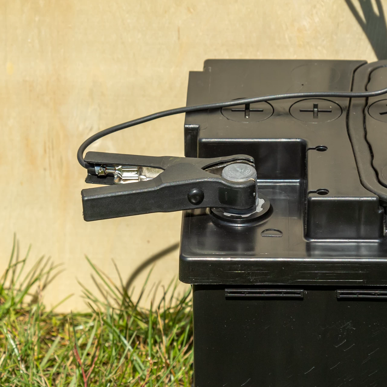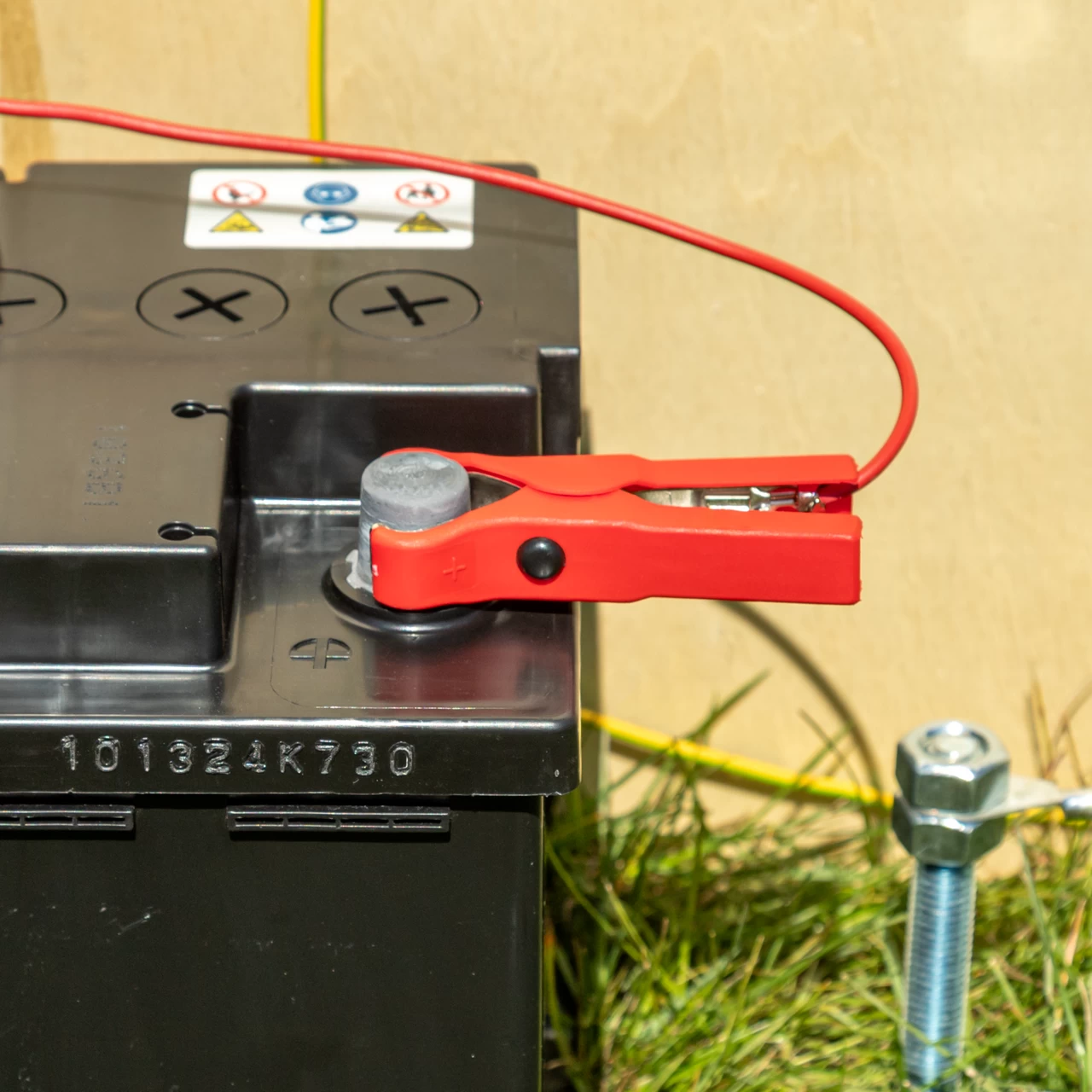 Il cavo di collegamento ha una lunghezza di 1 m ed è viene fabbricato da un filo di rame da 1,5 mm². A un’estremità del filo c’è un connettore a morsetto a coccodrillo, il quale si collega ai terminali dell’accumulatore. All’altra estremità del cavo è montata un’ occhiello Ø6 per il collegamento al dispositivo. Il filo rosso si collega al terminale positivo, il filo nero al terminale negativo.