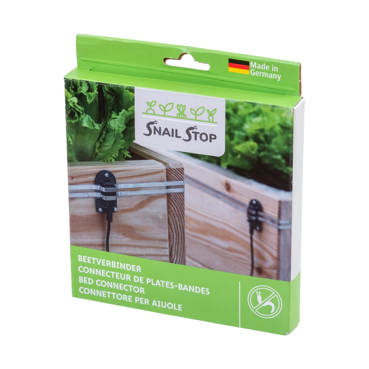 Generatore di impulsi per recinto elettrico contro le lumache può elettrificare un nastro di lunghezza massima di 30 metri ciò che significa 2-3 posti per orto. La zona di interconnessione di questi posti viene realizzata con questo cavo e provvista di appositi connettori.