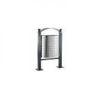 Cestino con contenitore elittico da 50×58 h cm in lamiera forata d�acciaio sp. 2 mm o acciaio inox AISI 304 con fori quadri da 6 mm, completo di anello reggi sacco in acciaio inox.