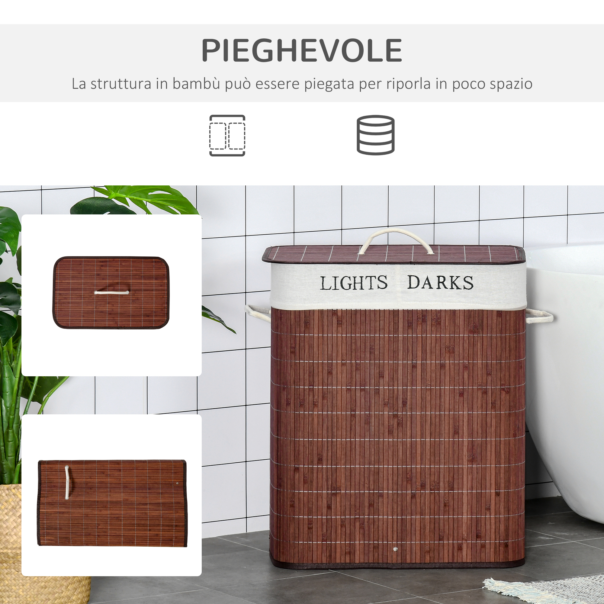 Cesto per Biancheria Bambù da 1L con 2 Scomparti, Coperchio e Maniglie, 52x32x63cm
