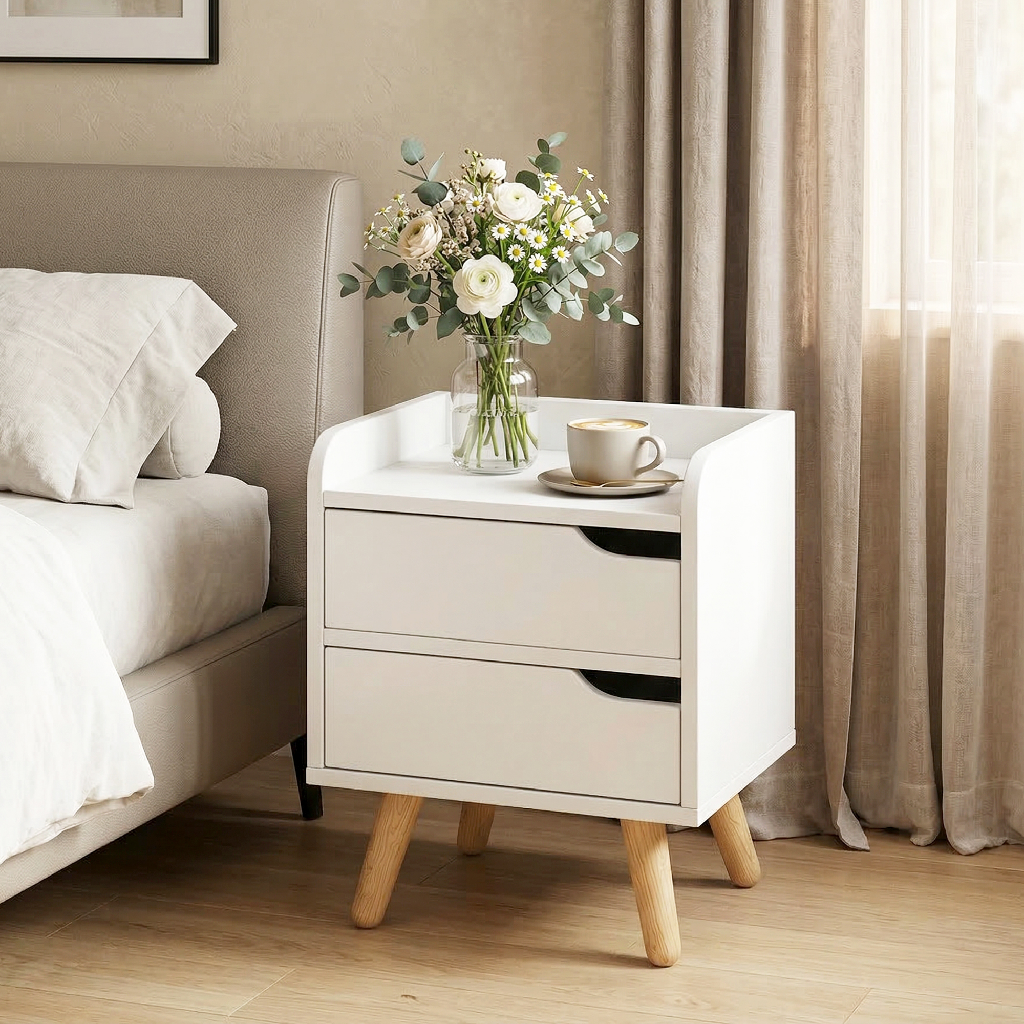- COMODINO MODERNO CON GAMBE IN LEGNO: le gambe in color legno naturale offrono al comodino da camera da letto la massima stabilità, con un tocco di eleganza in più al tuo arredo.