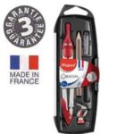 Astuccio 5 pezzi: Compasso con mina, 1 adattarore universale, 1 portamine da 0,5 mm, 1 astuccio di mine, 1 temperamine. Perfetta rigidità Aste in acciaio snodabili – Max circonferenza 250mm – Lunghezza compasso 130mm