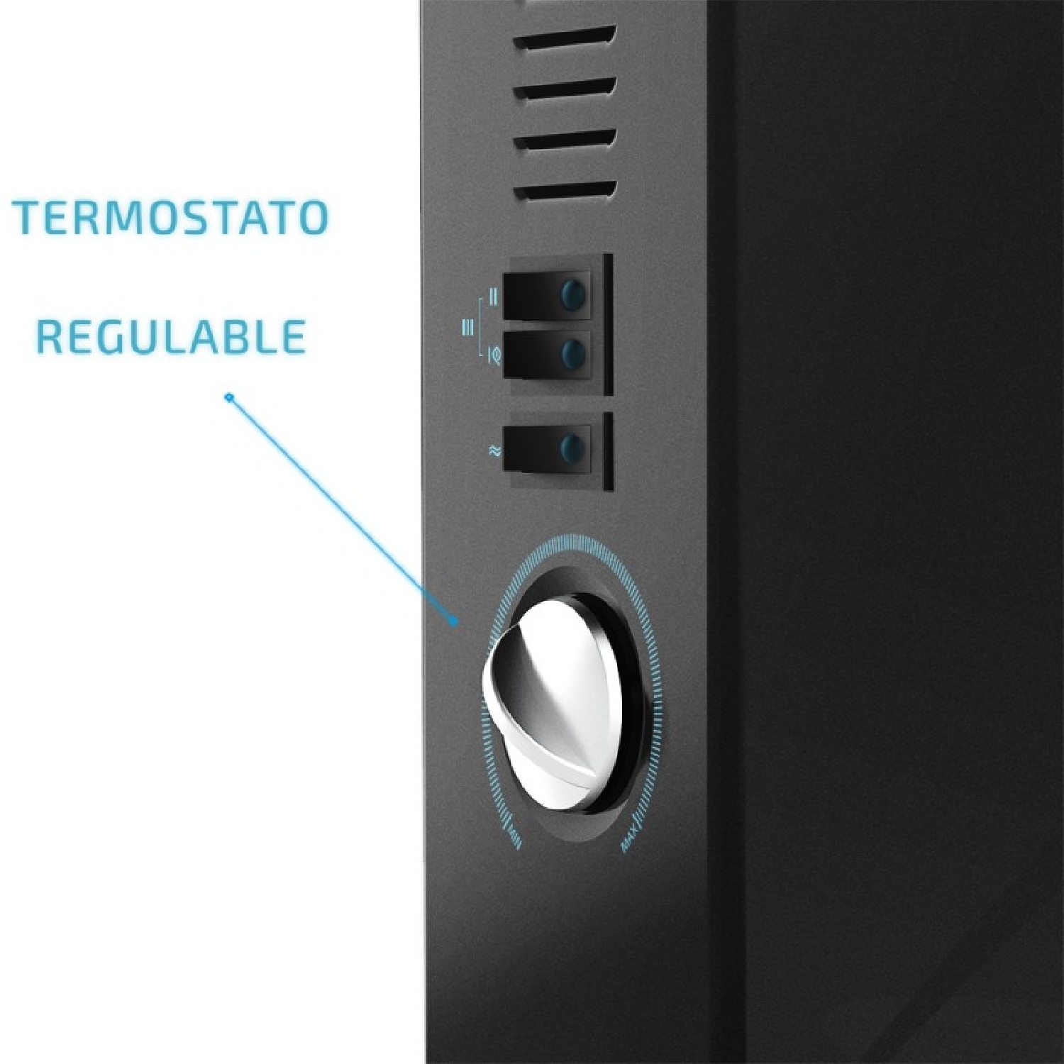 Termoconvettore con appoggi da 2000 W, termostato regolabile e modalità TurboFan.