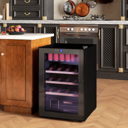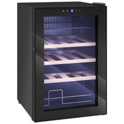 Cantinetta Frigo per Vino da 53L con Ripiani Regolabili per 12 Bottiglie e 25 Lattine, 43x45x64 cm, Nero