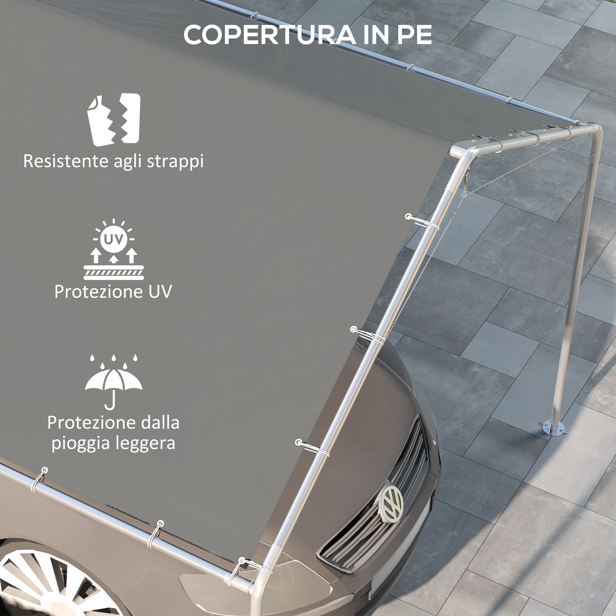 Copertura di Ricambio 6×3 m in PE Grigio Scuro Anti-UV per Carport Auto con Corde Elastiche