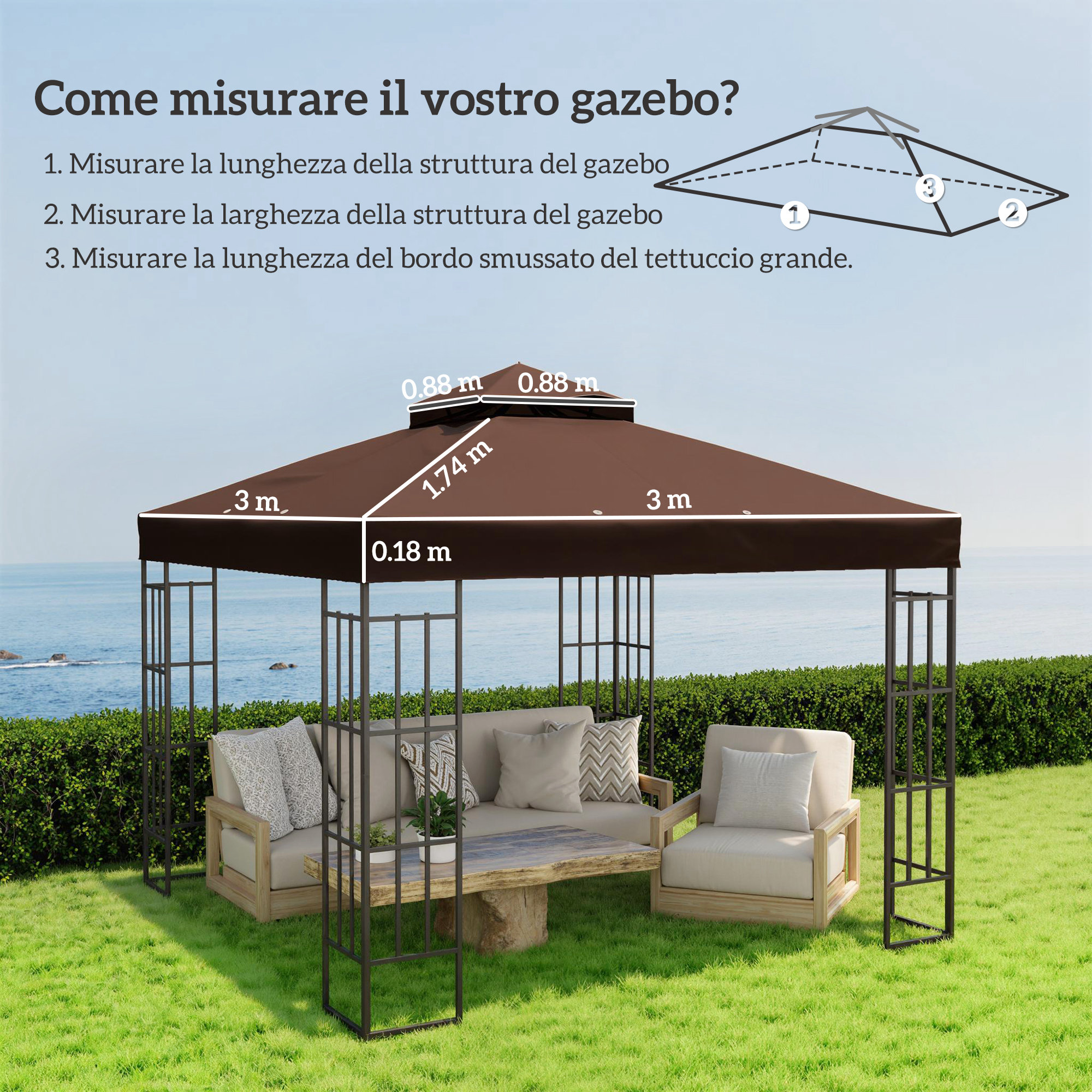 Copertura per Gazebo da Giardino 3x3m UPF30+ a 2 Livelli in Poliestere color Caffè