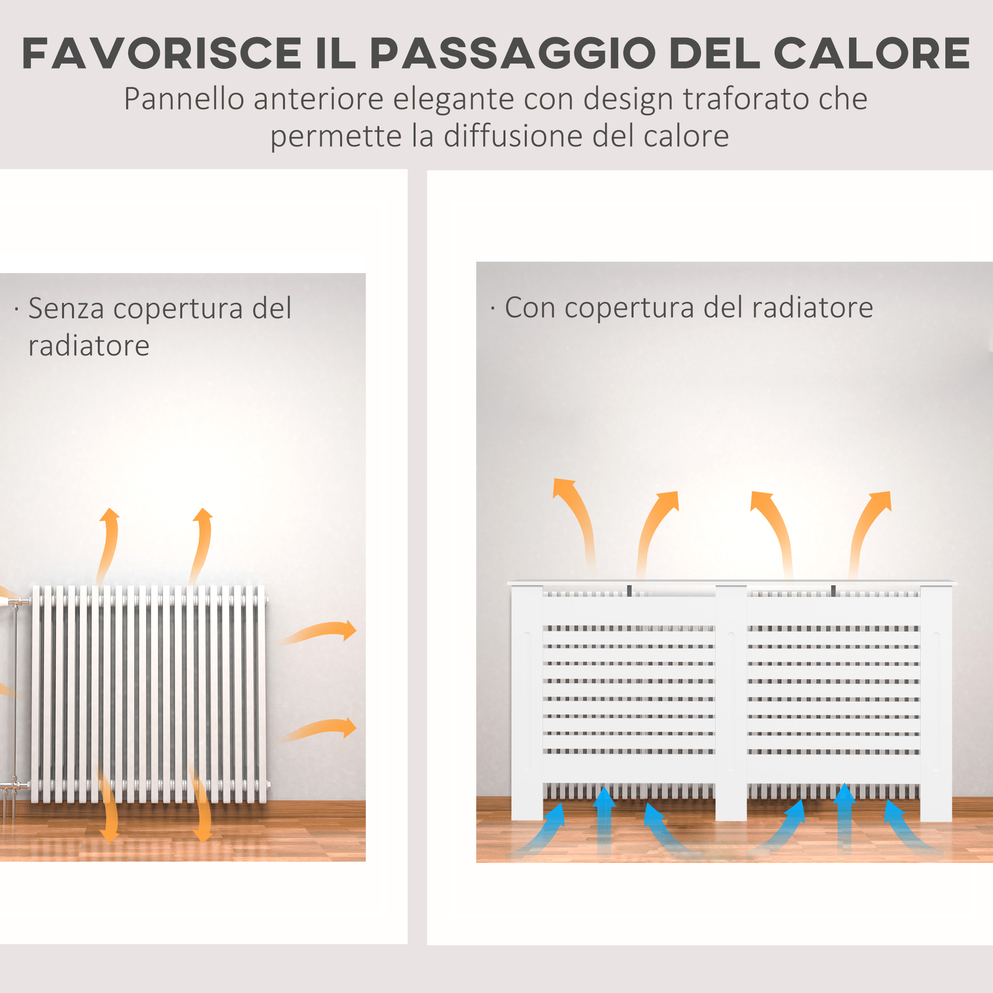 - • Copricaloriferi realizzato in MDF per fornire una costante stabilità e affidabilità