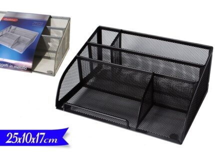 PORTA CANCELLERIA DA SCRIVANIA, 5 SCOMPARTI, IN METALLO RETINATOMISURA CM 25X17X10H
