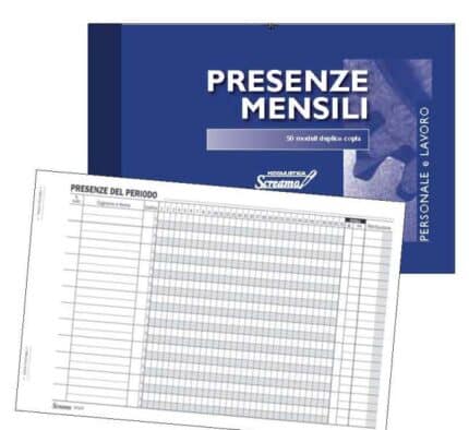 Presenze Mensili 50/50 fogli autoricalcanti a 2 copie – formato: 228×148 mm