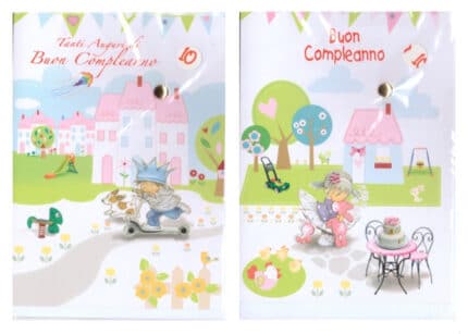 BIGLIETTI A 2 ANTE COMPLEANNO2 SOGGETTI CON BUSTA IN COORDINATO, MIS. CM 11,5X17DECORAZIONI: ( RUOTA PER SCELTA ANNO) (TESTO: COLORATO) (STAMPA: