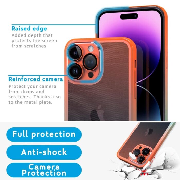 Cover Moda Apple iPhone – Protezione Fotocamera e Design SfumatoCover Moda Color per Apple iPhone con Protezione FotocameraLa Cover Moda Color per Apple iPhone è progettata per unire stile e funzionalità. Con un design elegante a doppio colore sfumato, protegge il tuo smartphone da urti e graffi, mantenendo la bellezza originale del dispositivo grazie al retro trasparente.Design Accattivante con Due Colori SfumatiIl design raffinato della cover presenta due colori sfumati che si fondono in modo armonioso, aggiungendo un tocco di classe. Il retro trasparente esalta l’aspetto dell’iPhone, mentre la cornice opaca offre un contrasto di colore più intenso.Protezione Fotocamera AvanzataLa protezione della fotocamera è fondamentale per questa cover. Grazie agli angoli rinforzati e alla struttura robusta, la fotocamera del tuo iPhone è protetta da graffi e cadute accidentali.Facile da Installare e RimuovereLa Cover Moda è estremamente facile da installare e rimuovere, con ritagli precisi che permettono l’accesso senza ostacoli a tutte le porte e funzionalità del tuo dispositivo Apple.Materiale in TPU AntiscivoloRealizzata in TPU di alta qualità, la cover offre una presa sicura e antiscivolo, riducendo il rischio di cadute accidentali e migliorando la maneggevolezza del tuo iPhone.