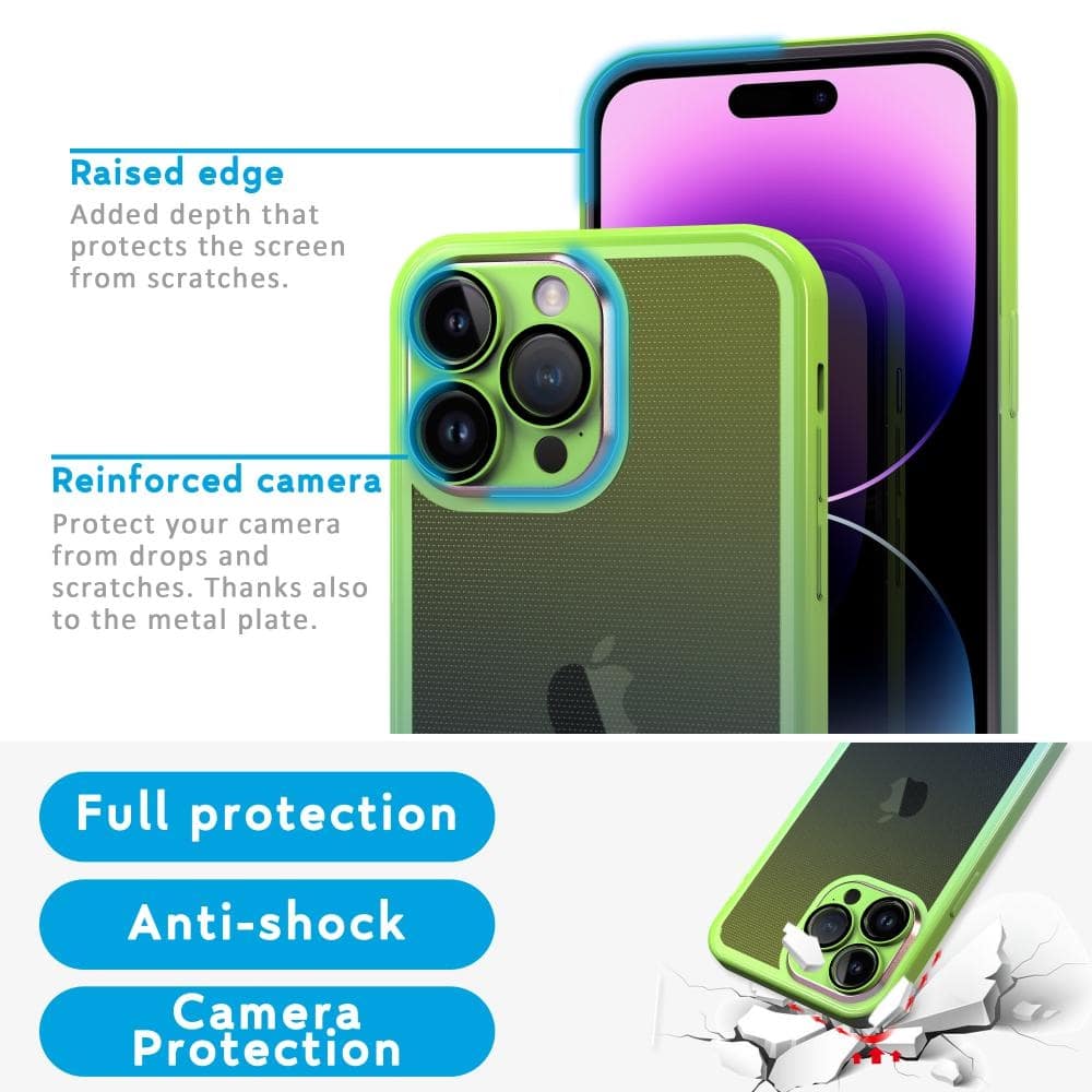 Cover Moda Apple iPhone – Protezione Fotocamera e Design SfumatoCover Moda Color per Apple iPhone con Protezione FotocameraLa Cover Moda Color per Apple iPhone è progettata per unire stile e funzionalità. Con un design elegante a doppio colore sfumato, protegge il tuo smartphone da urti e graffi, mantenendo la bellezza originale del dispositivo grazie al retro trasparente.Design Accattivante con Due Colori SfumatiIl design raffinato della cover presenta due colori sfumati che si fondono in modo armonioso, aggiungendo un tocco di classe. Il retro trasparente esalta l’aspetto dell’iPhone, mentre la cornice opaca offre un contrasto di colore più intenso.Protezione Fotocamera AvanzataLa protezione della fotocamera è fondamentale per questa cover. Grazie agli angoli rinforzati e alla struttura robusta, la fotocamera del tuo iPhone è protetta da graffi e cadute accidentali.Facile da Installare e RimuovereLa Cover Moda è estremamente facile da installare e rimuovere, con ritagli precisi che permettono l’accesso senza ostacoli a tutte le porte e funzionalità del tuo dispositivo Apple.Materiale in TPU AntiscivoloRealizzata in TPU di alta qualità, la cover offre una presa sicura e antiscivolo, riducendo il rischio di cadute accidentali e migliorando la maneggevolezza del tuo iPhone.