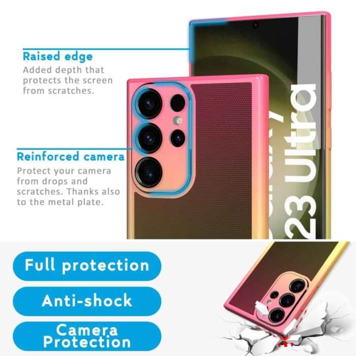 Cover Moda Color per Samsung Galaxy – Stile e Protezione FotocameraCover Moda Color per Samsung GalaxyLa Cover Moda Color per Samsung Galaxy offre una combinazione perfetta di stile e protezione, grazie al suo design accattivante e alla difesa avanzata della fotocamera.Design Raffinato con Due Colori SfumatiLa cover presenta un design accattivante con due colori sfumati in trasparenza, che aggiungono un tocco di raffinatezza. Il retro trasparente consente di ammirare la bellezza originale del dispositivo, mentre la cornice ha un colore opaco più intenso per un aspetto moderno.Protezione Completa della FotocameraLa protezione fotocamera è una delle caratteristiche chiave di questa cover. Grazie alla sua struttura solida e agli angoli rinforzati, protegge il tuo dispositivo da urti, cadute e graffi indesiderati, mantenendo la fotocamera al sicuro.Facile Installazione e RimozioneLa Cover Moda 02 è progettata per essere facile da installare e rimuovere. I ritagli precisi garantiscono un accesso senza ostacoli a tutte le porte, i pulsanti e le funzionalità del tuo dispositivo.Materiale in TPU AntiscivoloRealizzata in TPU, la cover offre una presa antiscivolo che migliora la maneggevolezza del telefono, riducendo il rischio di cadute accidentali e aumentando la sicurezza.