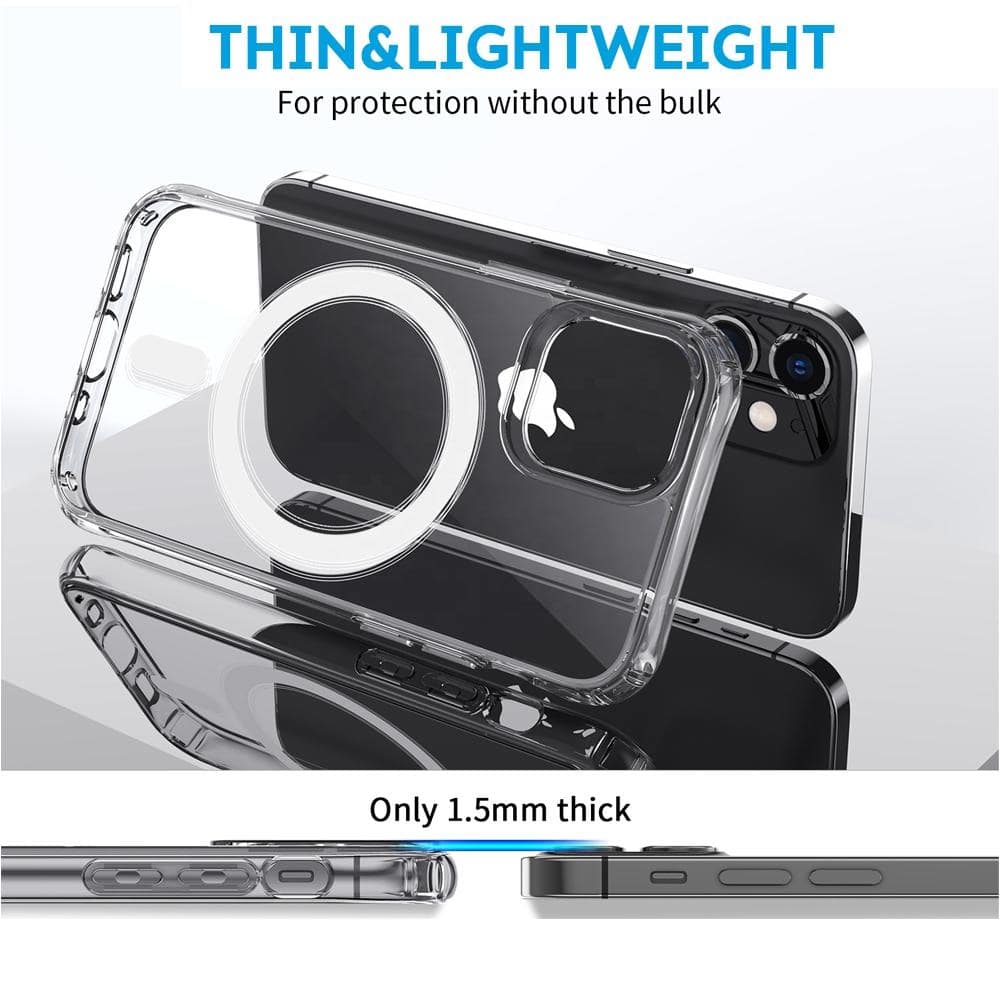Cover per iPhone MagSafe Anello Magnetico Protezione Potenziata Ultra Case CV08Cover MagSafe iPhone con Anello Magnetico Ultra Case CV08Ricarica Wireless Veloce e FacileLa cover CV08 MagSafe è dotata di un anello magnetico integrato che si allinea perfettamente con il tuo iPhone. Questo design innovativo rende la ricarica wireless più veloce e semplice che mai, offrendo un’esperienza di attacco e rimozione rapida per un uso quotidiano senza problemi.Design Ultra Sottile e CristallinoCon uno spessore di soli 1.5 mm, questa custodia ultra sottile e leggera non aggiunge peso o ingombro extra al tuo telefono. La parte posteriore trasparente cristallina consente di mostrare la bellezza naturale del tuo iPhone, mantenendo un aspetto elegante e sofisticato.Caratteristiche PrincipaliAnello Magnetico: Permette una ricarica wireless più rapida e una connessione facile con i dispositivi MagSafe.Design Ultra Sottile: Spessore di soli 1.5 mm per mantenere il profilo snello del tuo iPhone.Trasparente e Chiaro: La parte posteriore cristallina mette in risalto il design del tuo telefono.Contenuto della Confezione1 x Cover CV08 MagSafe