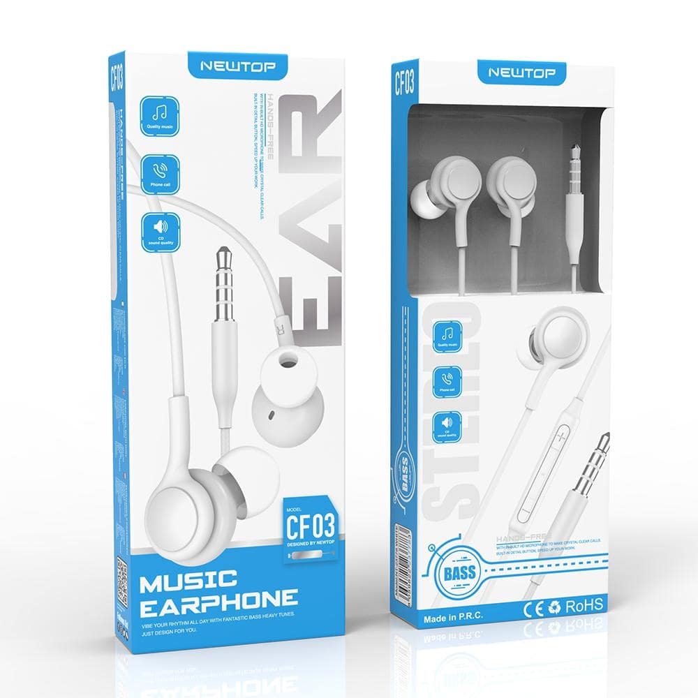 Cuffie In-Ear con Bilanciere Volume e Microfono Newtop CF03 Bianco