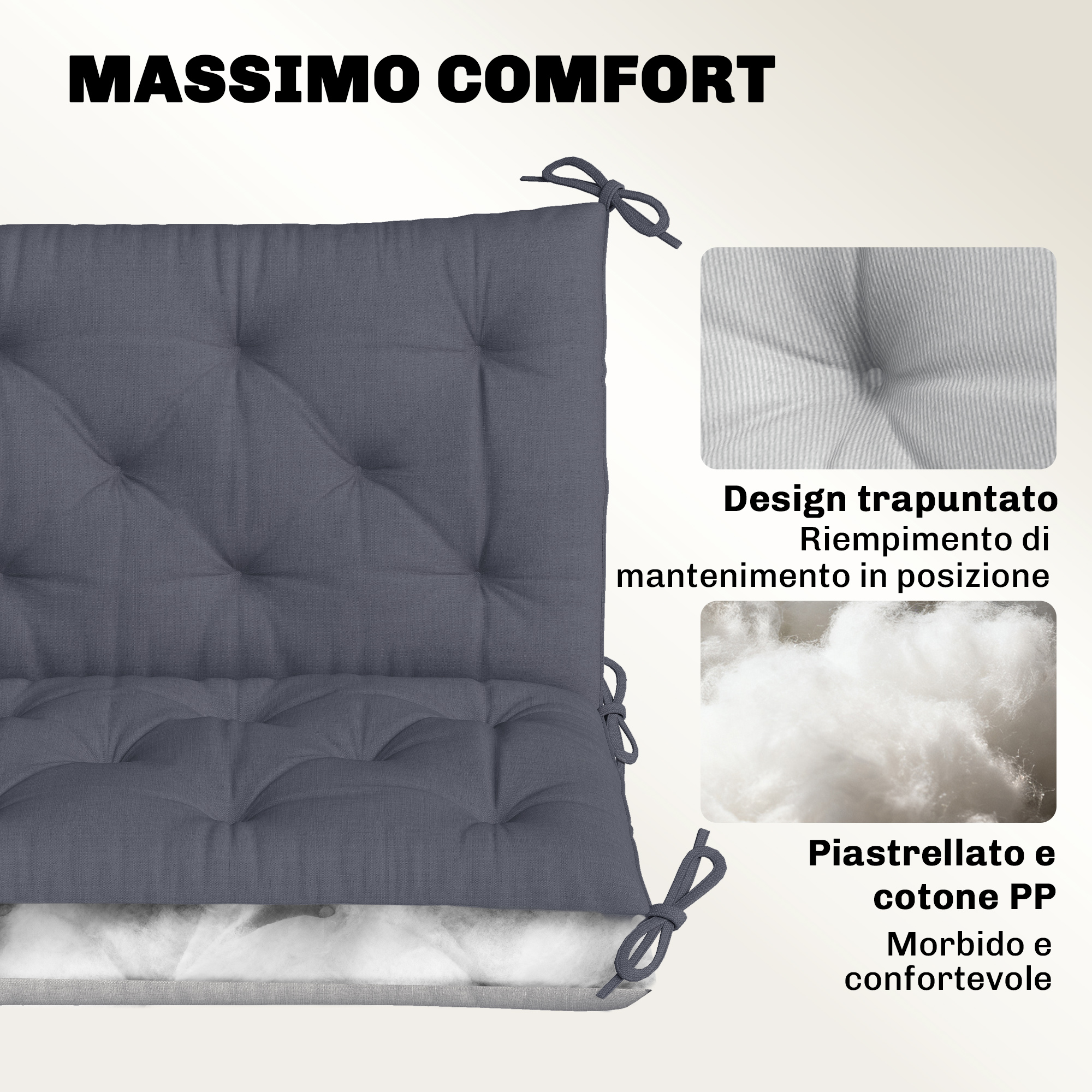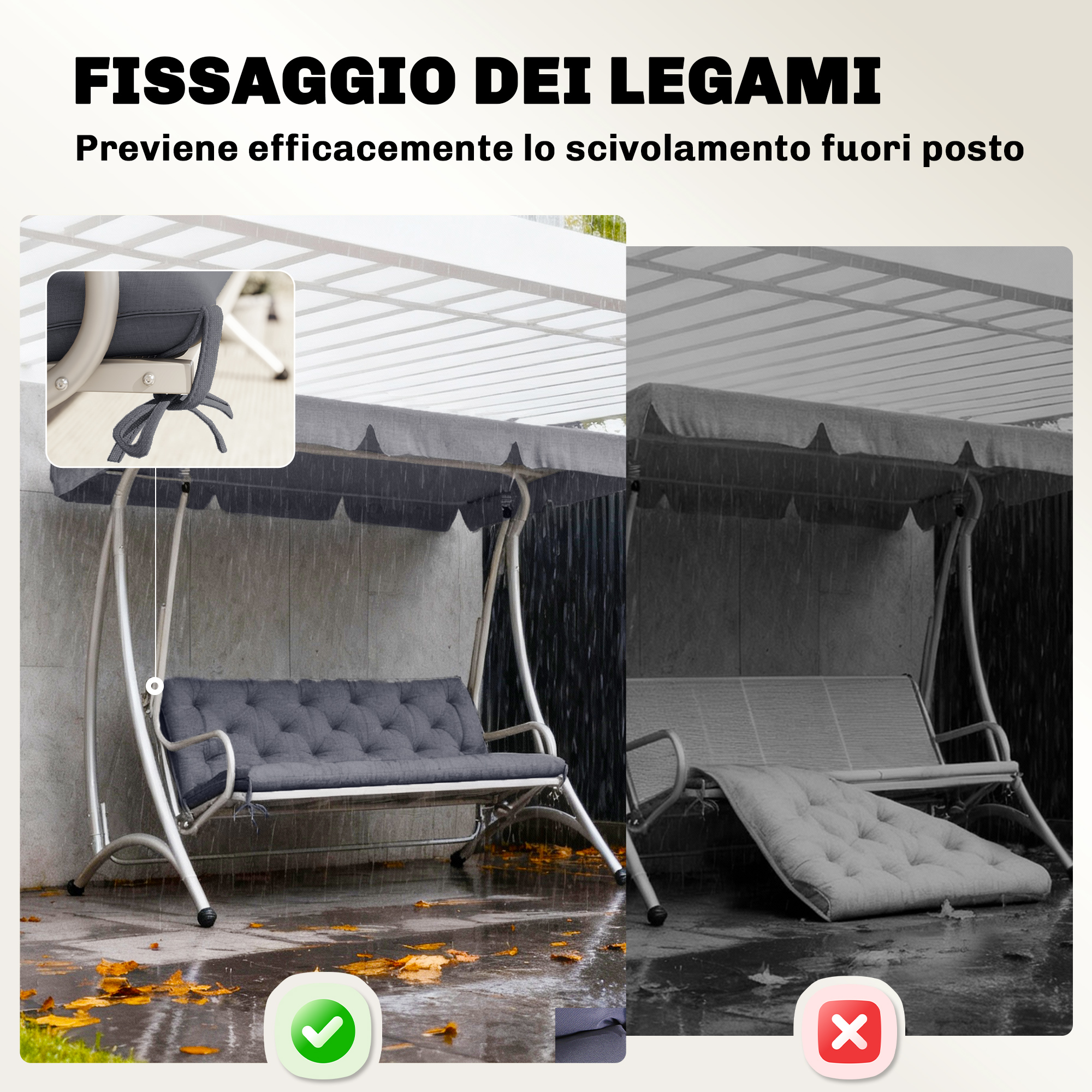 Cuscino da Giardino in Stile Capitonné con 6 Lacci, in Cotone e Poliestere, 150x98x8 cm, Grigio Scuro