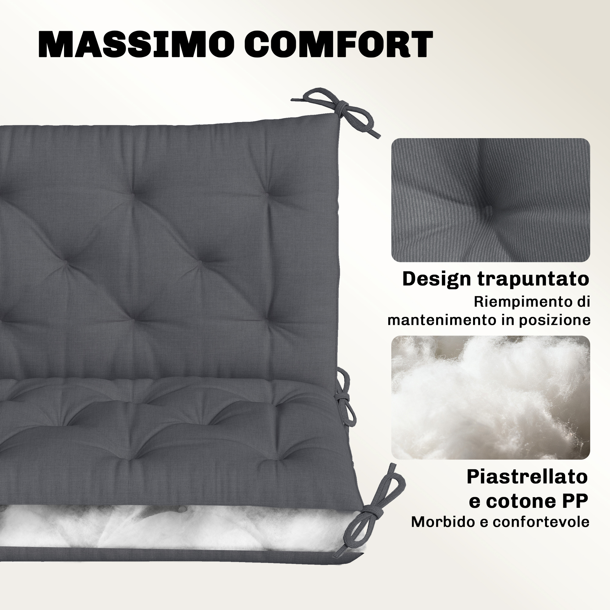 Cuscino da Giardino in Stile Capitonné per 2 Persone con 6 Lacci, in Cotone e Poliestere, 150x98x8 cm, Grigio Scuro