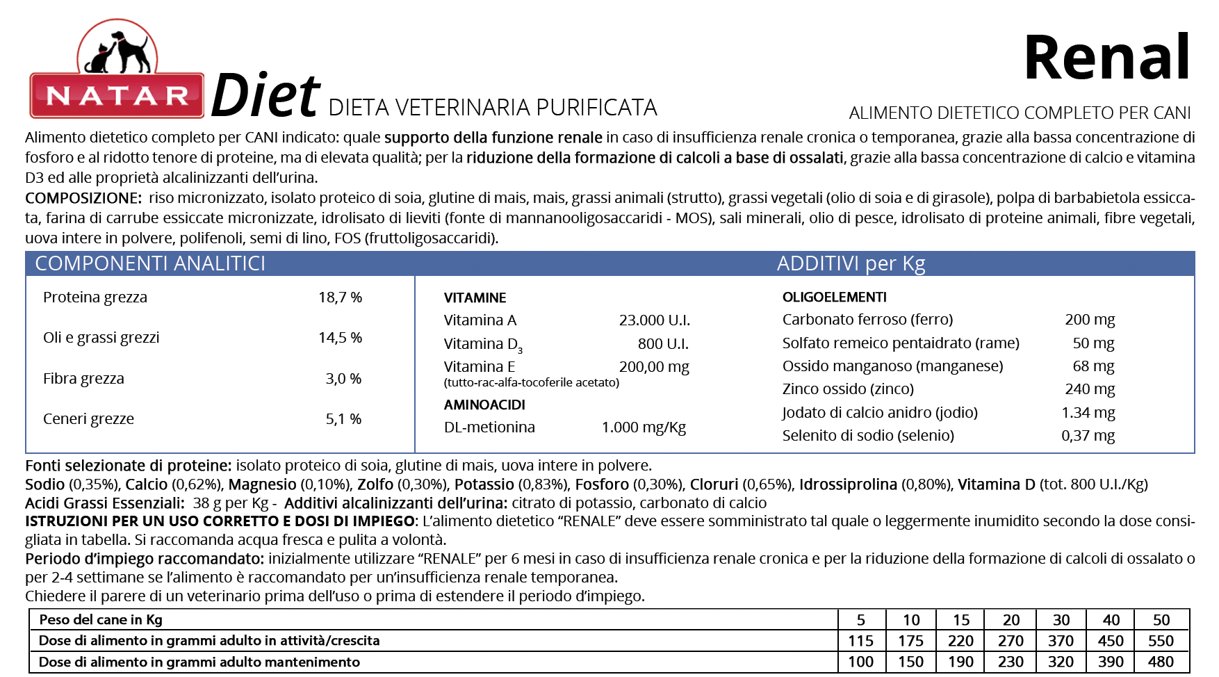 - supportare la funzionalità renale in caso di insufficienza renale cronica o temporanea, grazie alla bassa concentrazione di fosforo e al contenuto proteico ridotto, ma di elevata qualità;
