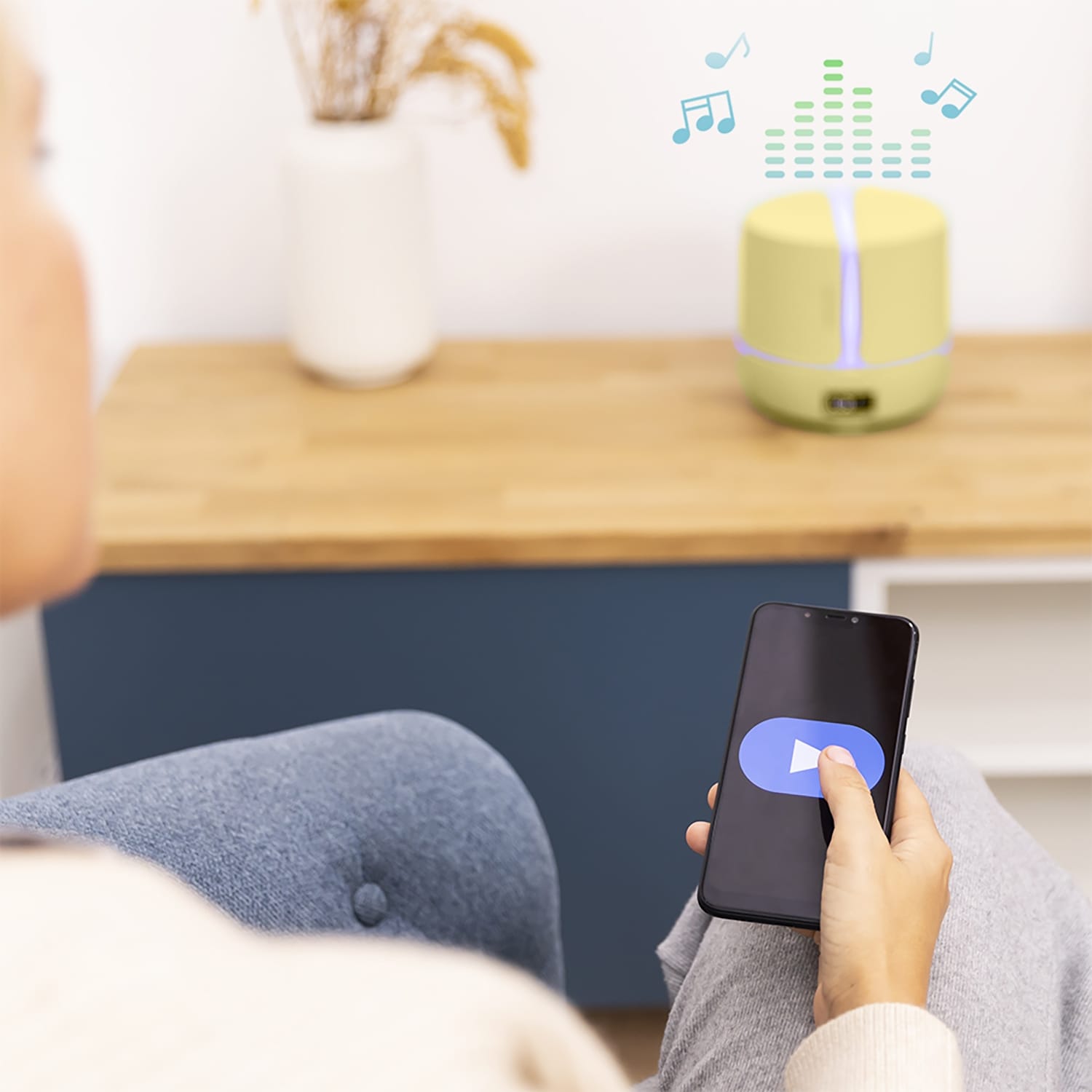 Diffusore di aromi con 500 ml di serbatoio, display, casse e controllo mediante bluetooth.