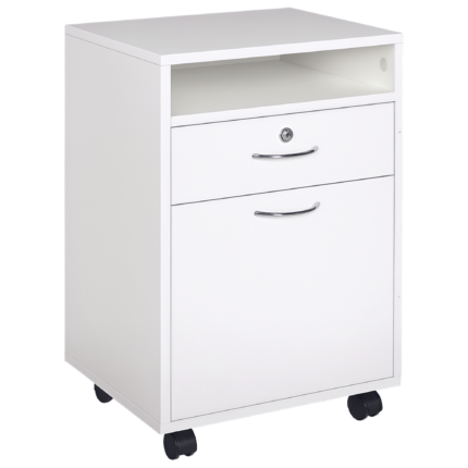 Schedario da Ufficio con Cassetto, Ruote a Freno e Ripiano Aperto, Cassettiera Ufficio con Serratura e 2 Chiavi per Lettera/Legale/Formato A4, Armadietto per Studio, 40x35x60cm, Bianco