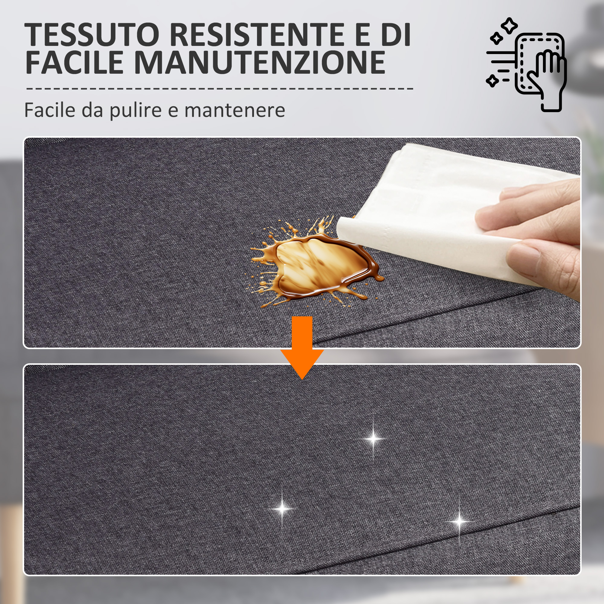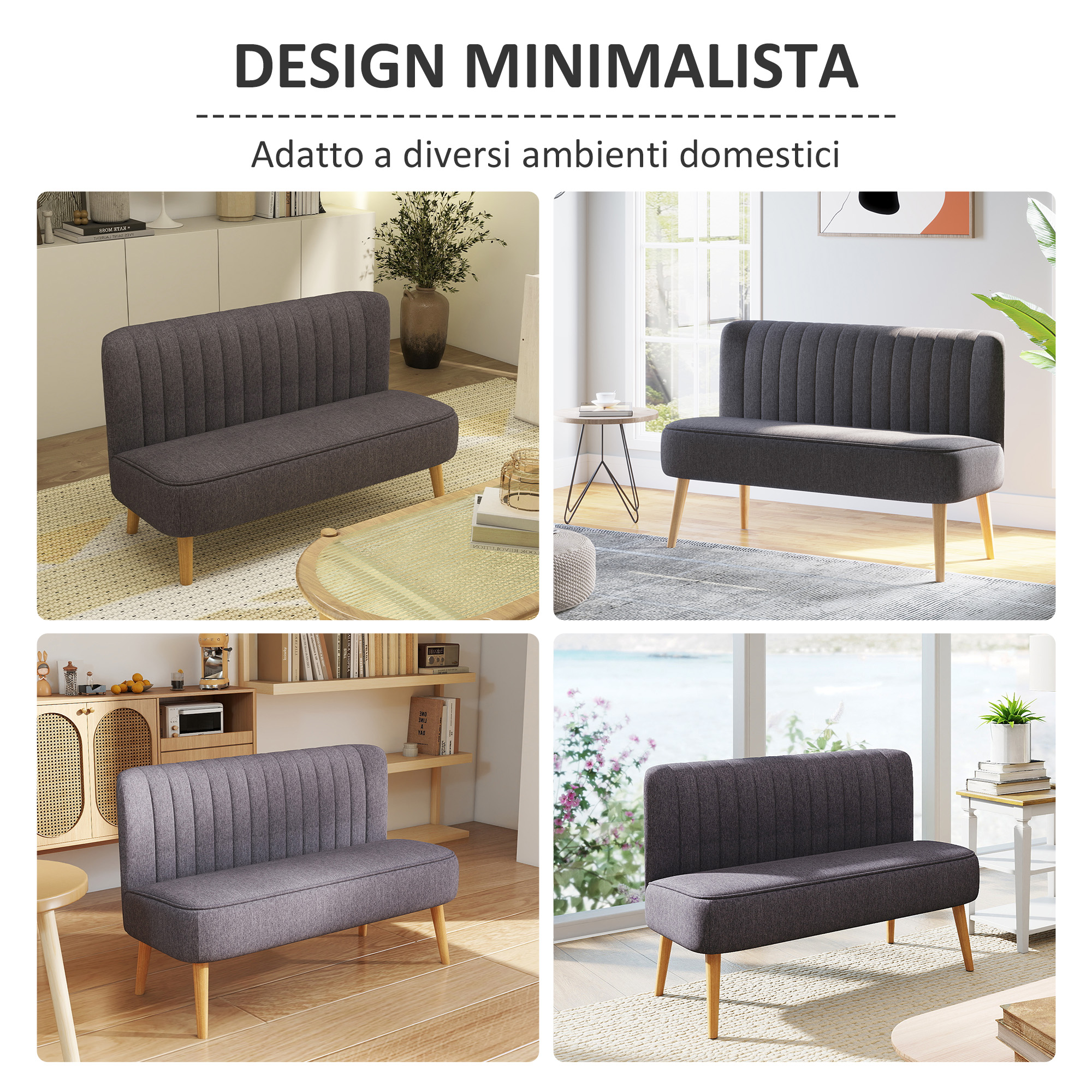 Divano 2 Posti Moderno in Tessuto Senza Braccioli, Divanetto da Salotto con Gambe in Legno, 117×56,5×77 cm, Grigio Scuro