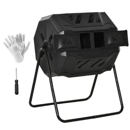 Compostiera da Giardino Girevole a 2 Sezioni con 8 Prese d’Aria, Compostiera Domestica in Acciaio e PP, 160 L, per Compostaggio Rifiuti Organici, 71x65x96 cm, Nero