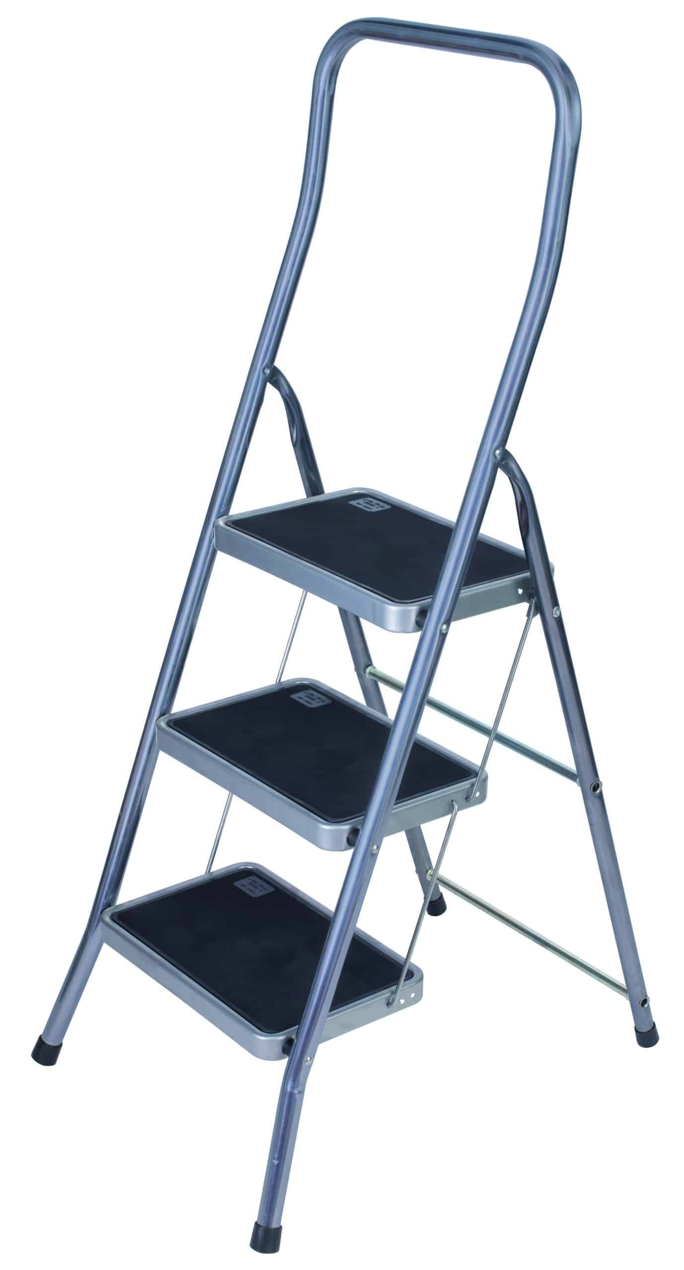 Struttura in acciaio verniciato, tubolare rinforzato, gradini cm. 25×37 con tappetini anti-sdrucciolo in gomma, sistema di bloccaggio Safety Stopper, sistema salvaspazio (chiuso occupa solo 6 cm), particolarmente indicato per aree domestiche, portata kg. 150, certificata EN14183.