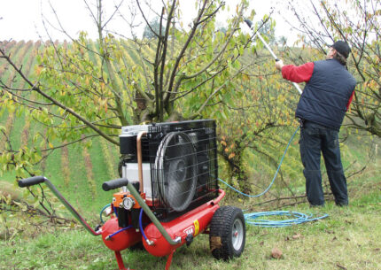 La forbice pneumatica Sana Sly è una forbice pneumatica unica nel suo genere: la lama viene disinfettate ad ogni taglio. Così si può tenere sotto controllo il frutteto e si evita la trasmissione di malattie delle piante.