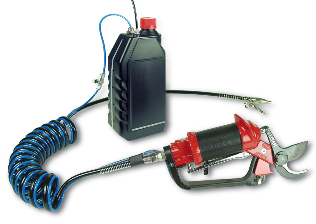 Lisam ha così realizzato una forbice pneumatica per la potatura dotata di uno speciale dispositivo che disinfetta la lama ogni volta che si esegue un taglio. Il dispositivo spruzza uno spray disinfettante sulla lama, sanificandola da eventuali batteri presenti sull’albero.