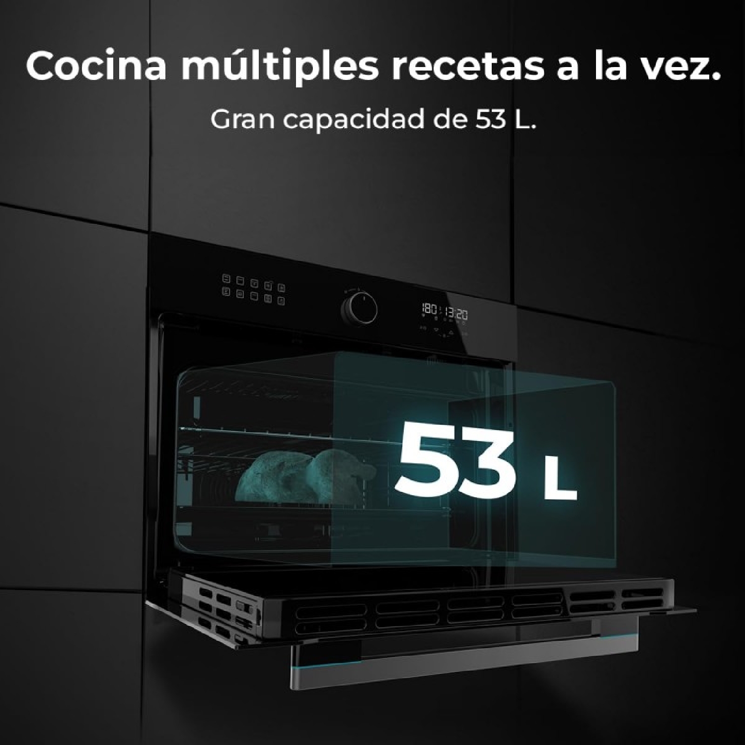 Cucina più ricette contemporaneamente: il forno ha una capacità di 53 L con guide telescopiche e 3 posizioni per le teglie, per poter cucinare diverse ricette contemporaneamente o una sola con precisione da alta cucina.