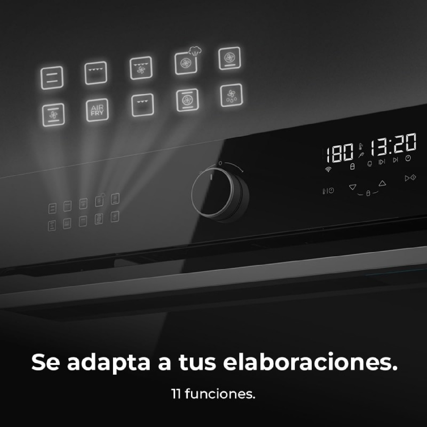 Forno da incasso Airfryer Glass Black da 53 l di capacità, 11 funzioni ed Airfryer Master, Pizza Master, Steam Assist, Steam EasyClean e 3D Cooking, classe A.