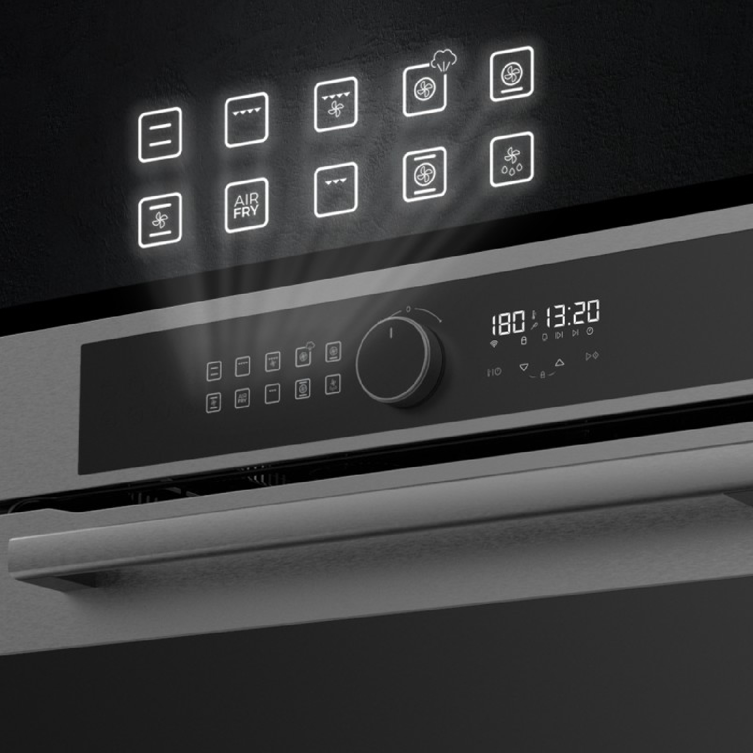 Forno a incasso Airfryer Matt da 81 l di capacità, 11 funzioni ed Airfryer Master, Pizza Master, Steam Asisst, Steam EasyClean e 3D Cooking, classe A.