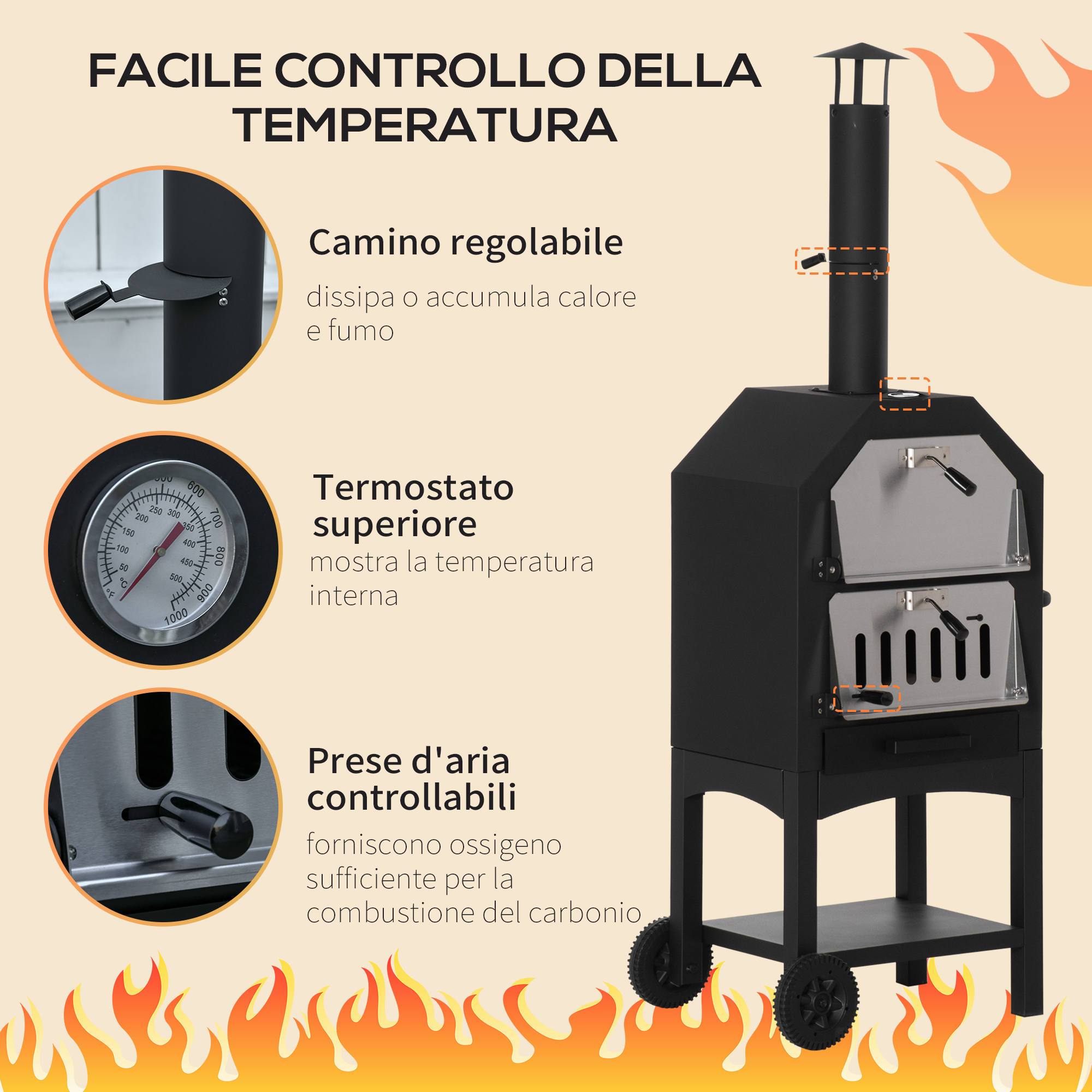 - FACILE DA USARE: Dotato di termometro per monitorare la temperatura interna del forno e ottenere sempre la cottura perfetta. La ciminiera lunga è progettata per disperdere il fumo in maniera semplice e sicura. Ideale per uso esterno: grigliate, picnic, feste in giardino.