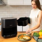 Friggitrice digitale ad aria da 1500 W e 5,5 l. Design con finiture in acciaio inossidabile e pacchetto di accessori.