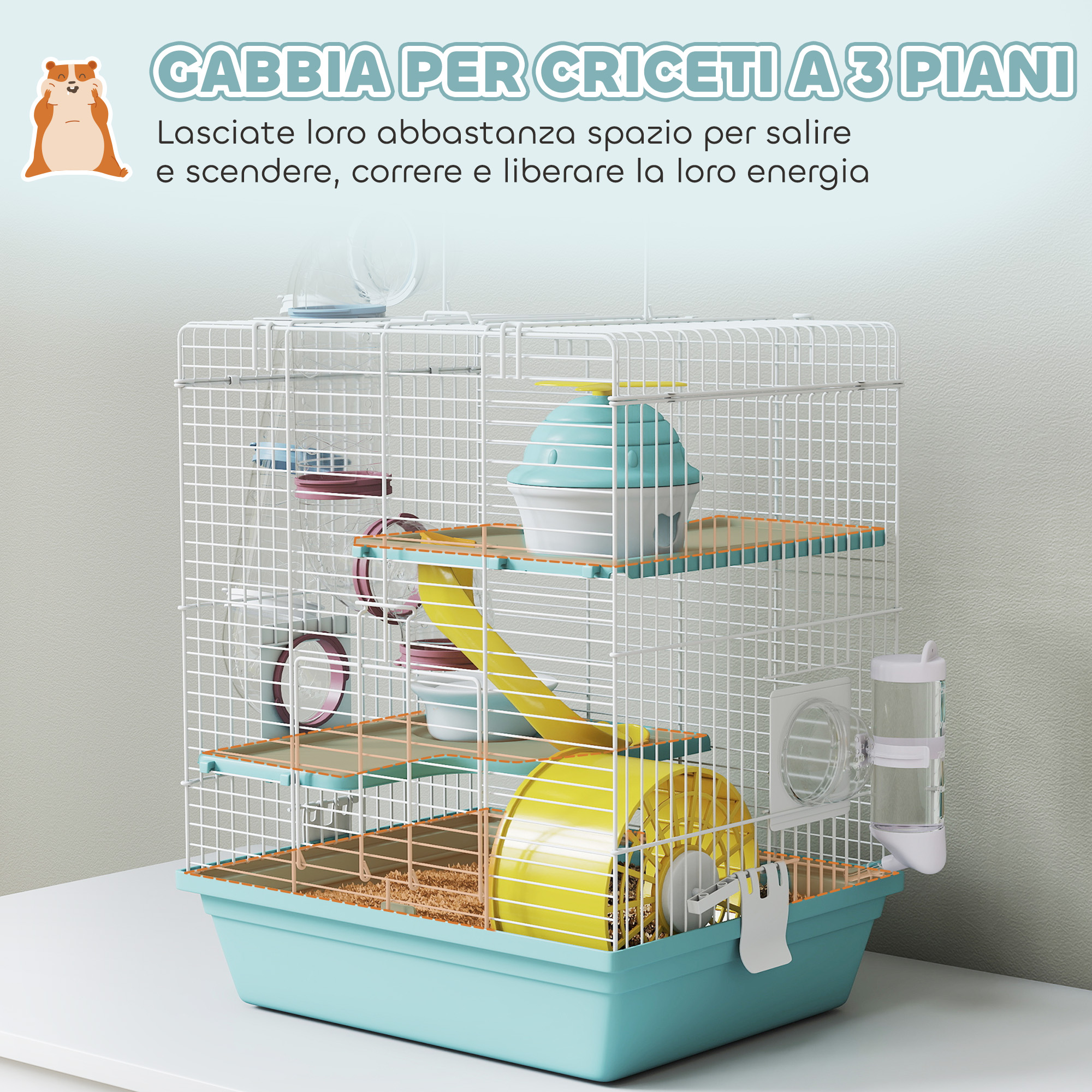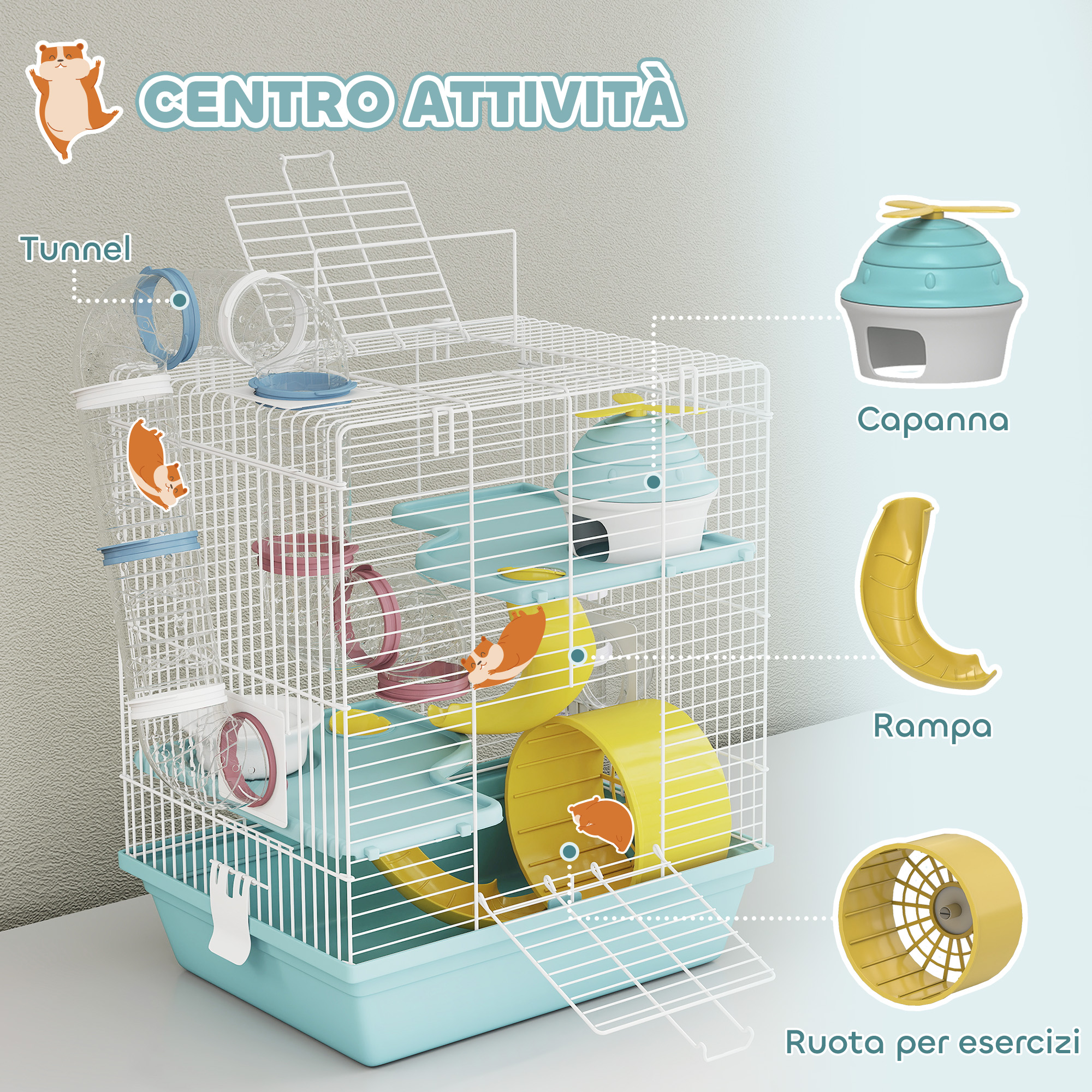 • • Gabbia per criceti a 3 livelli con tante possibilità di gioco e movimenti