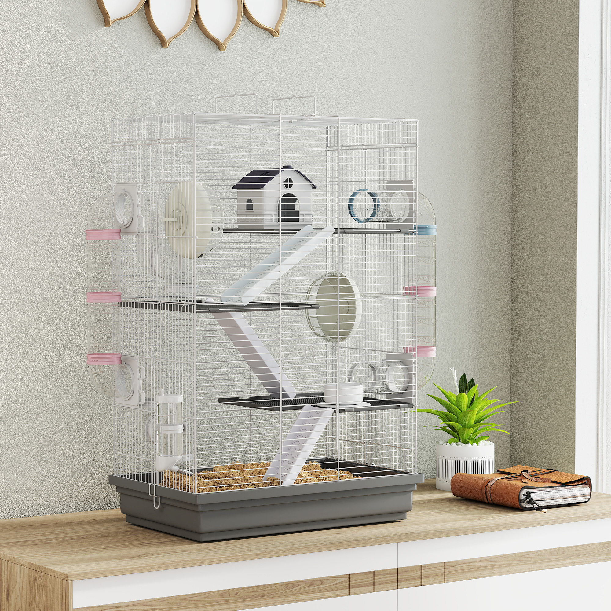Cerchi un ambiente stimolante per il tuo piccolo roditore? La nostra gabbia per criceti [ITALFROM HOME DESIGN] a 4 livelli con tunnel modulabili e ruota offrirà loro un ambiente gradevole e stimolante, Completa di accessori come ciotole, serbatoi per l’acqua e rampe, questa struttura rende la cura del tuo animale un gioco da ragazzi,