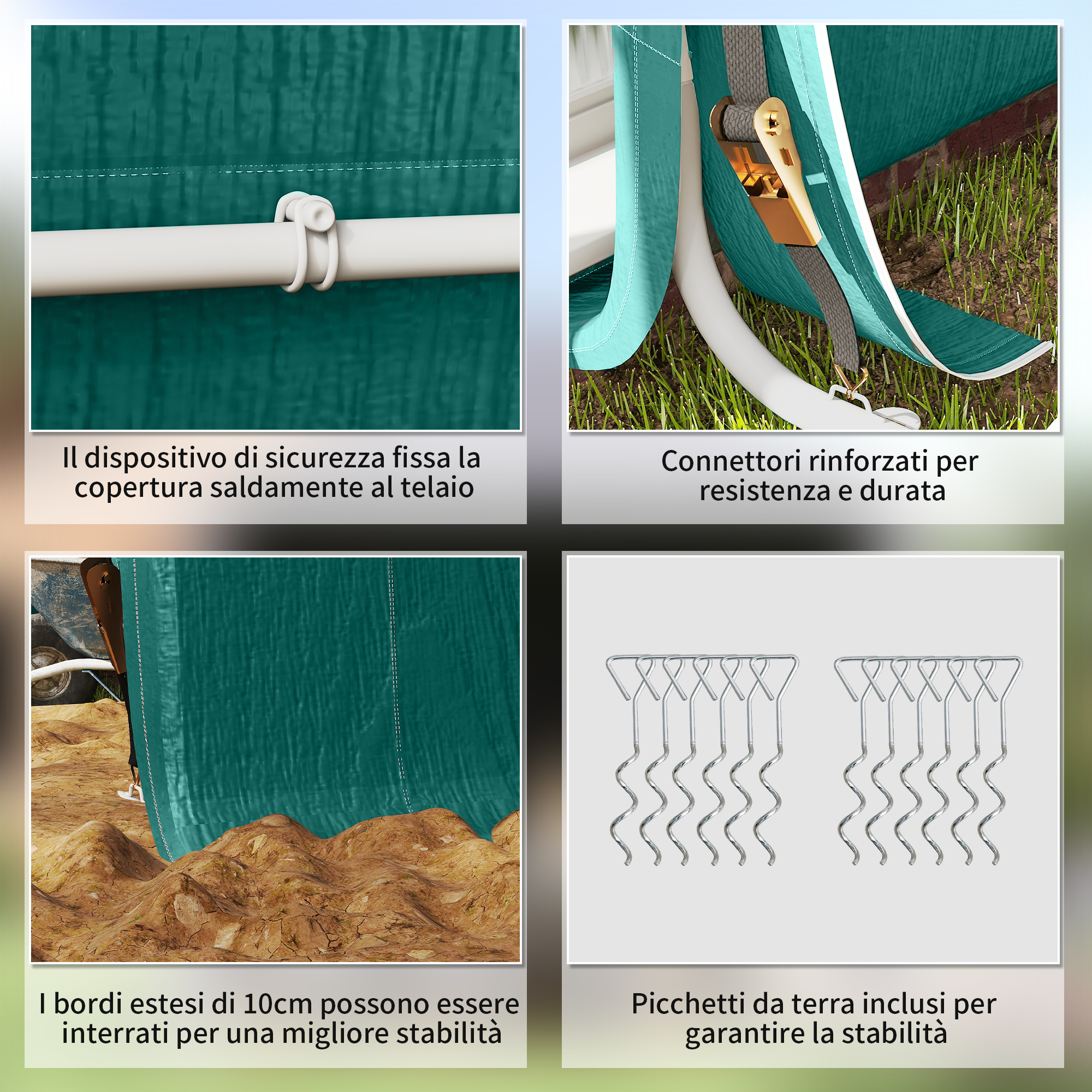 - • Picchetti extra per rendere il tendone per auto stabile