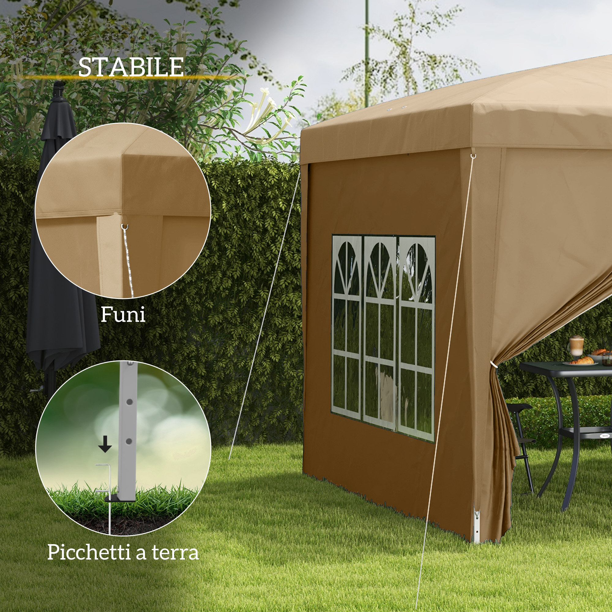 Gazebo da Esterno 3×3 m Pieghevole con 4 Pannelli Laterali, in Acciaio e Tessuto Oxford Cachi
