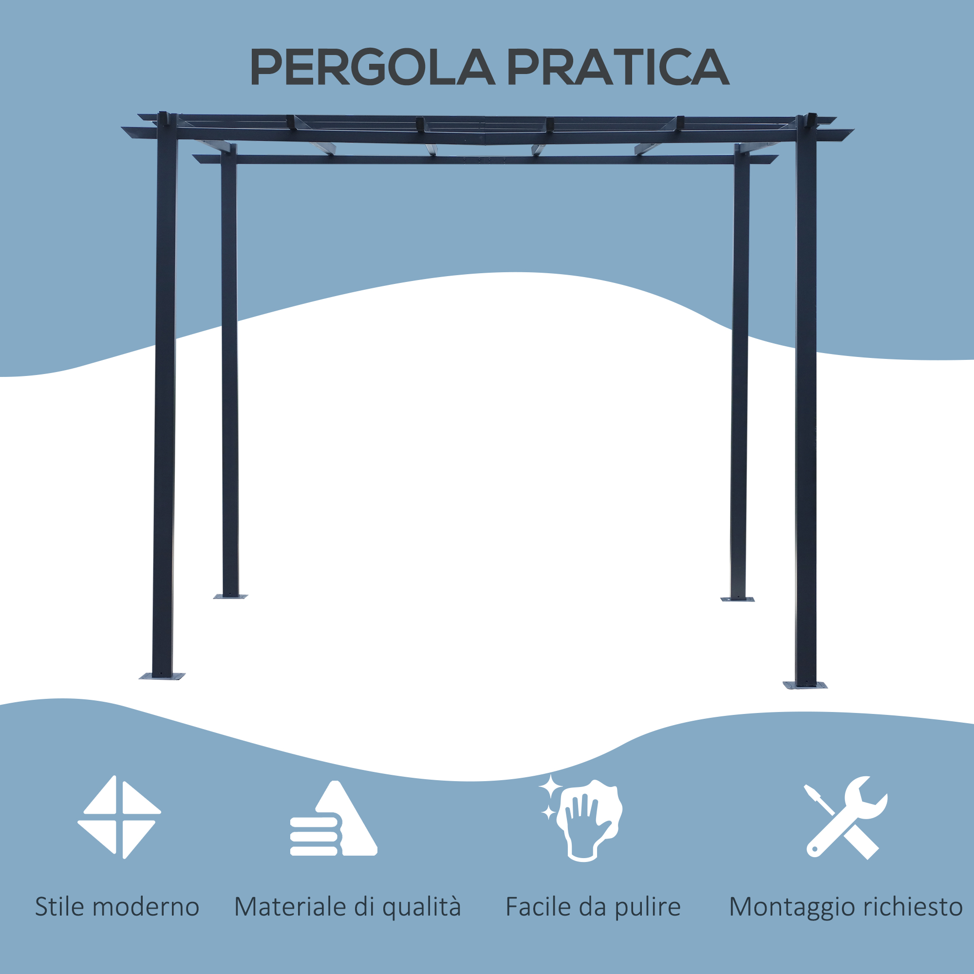 - • Struttura in metallo resistente agli agenti atmosferici