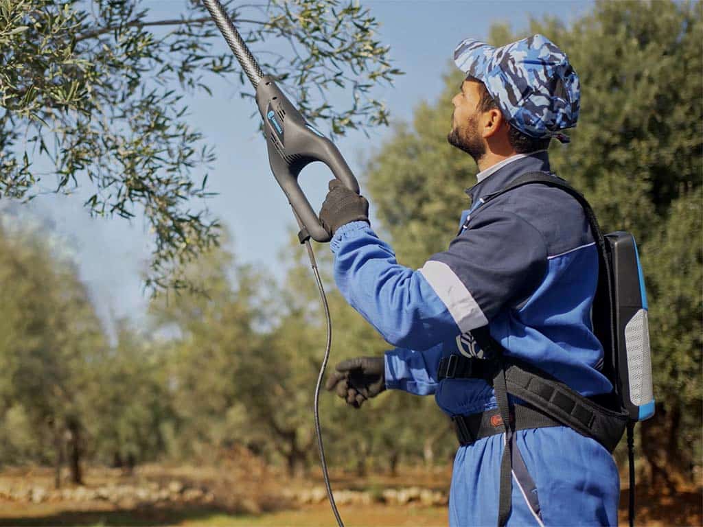 POWER 58 PLUS è particolarmente indicato per le parti alte dell’olivo: nella maggior parte dei casi l’operatore può evitare l’utilizzo della scala, lavorando così in sicurezza.