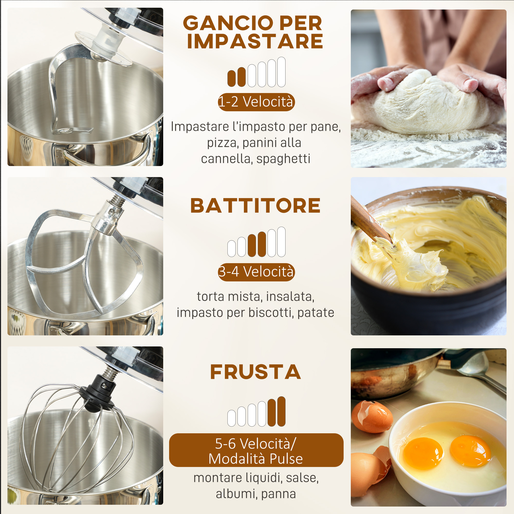 - • Mixer da cucina con 6 velocità e una funzione pulse, che offrono un controllo preciso per qualsiasi ricetta